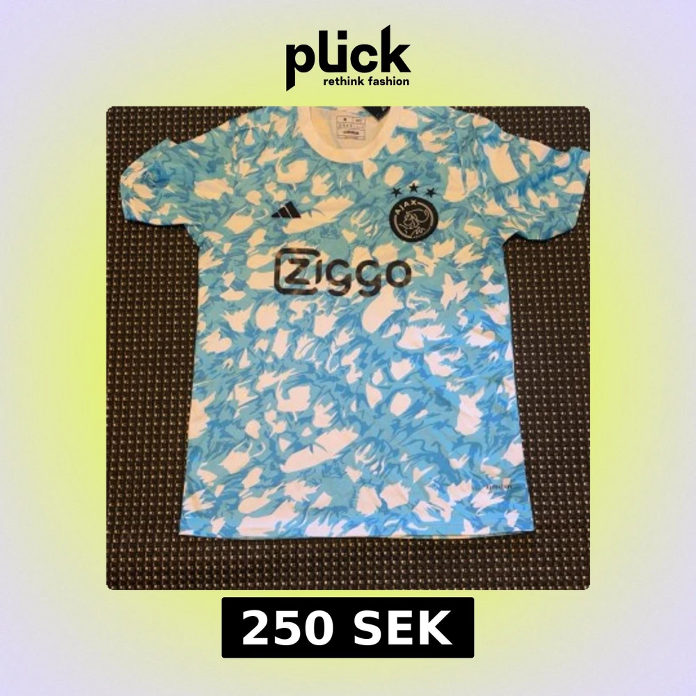 Ajax fotbollströja från Adidas i blått och vitt med abstrakt mönster. Kortärmad modell med klubbmärke och Ziggo-logga på bröstet. Tillverkad i lätt och ventilerande funktionsmaterial, perfekt för träning eller match.