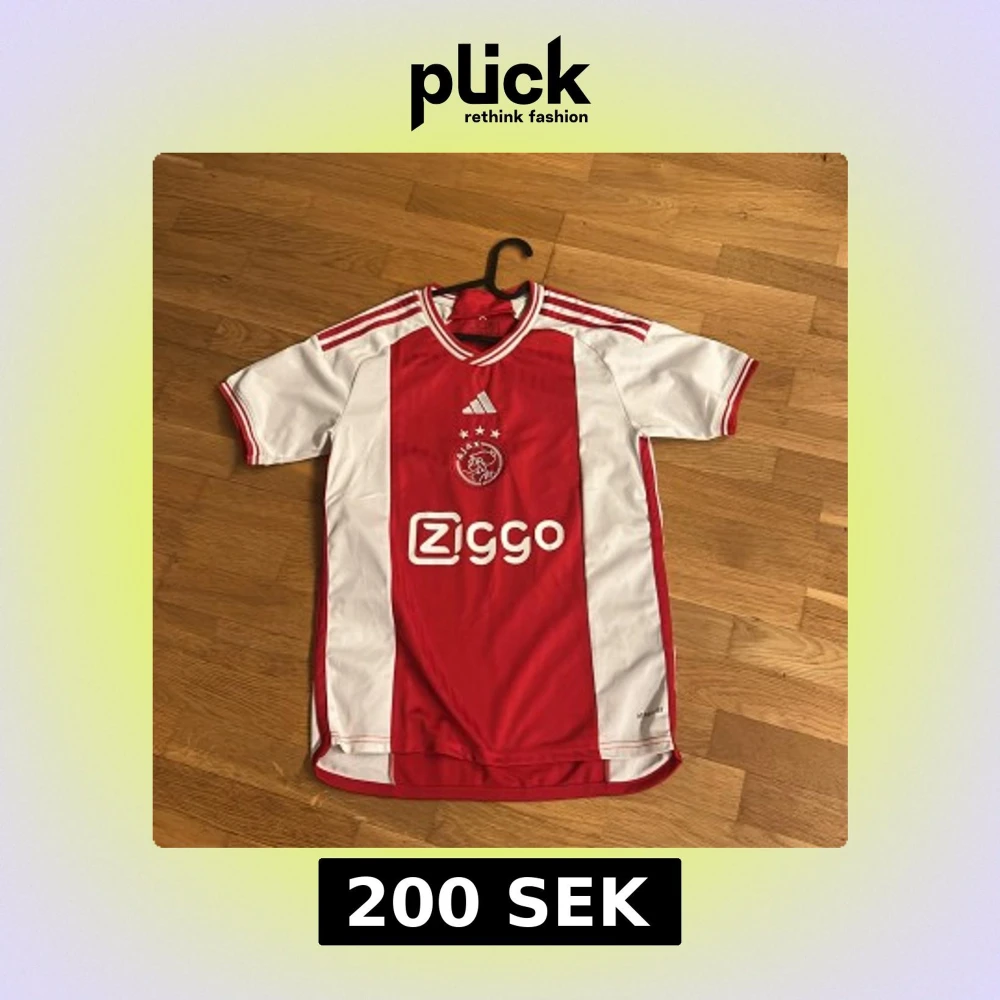 Ajax hemmatröja från Adidas med klassiska röda och vita paneler, Ziggo sponsortryck och klubbmärke på bröstet. Tröjan har korta ärmar, rund hals och tre ränder på axlarna. Tillverkad i lätt och ventilerande polyester, perfekt för match eller träning.