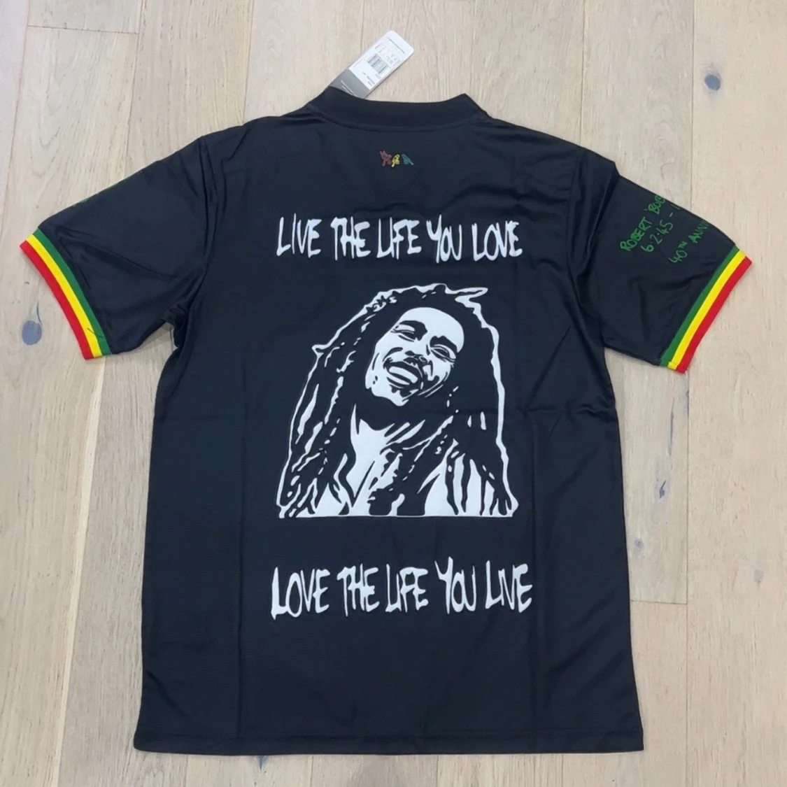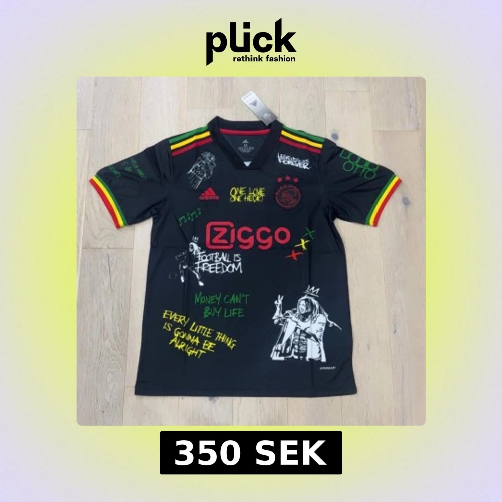Ajax x Bob Marley limited edition fotbollströja i svart med färgglada detaljer i rött, gult och grönt på axlar och ärmslut. Tryck med Ziggo-logga, Ajax-märke och Bob Marley-grafik samt inspirerande texter. Tillverkad i lätt och ventilerande Aeroready-material.