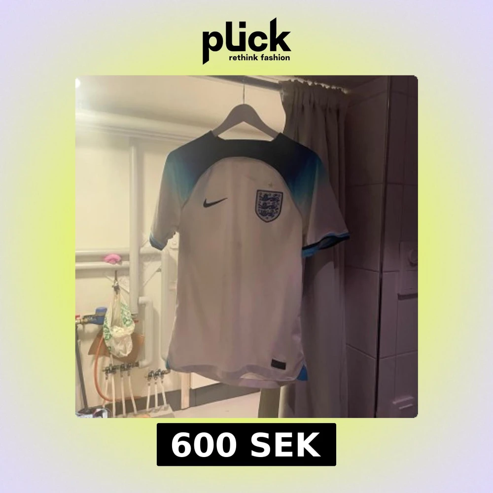 England fotbollströja från Nike i storlek S. Tröjan är vit med mörkblå och ljusblå detaljer vid axlar och ärmslut, samt England-emblem på bröstet. Tillverkad i polyester med rund hals och korta ärmar. Perfekt för dig som vill representera Three Lions.