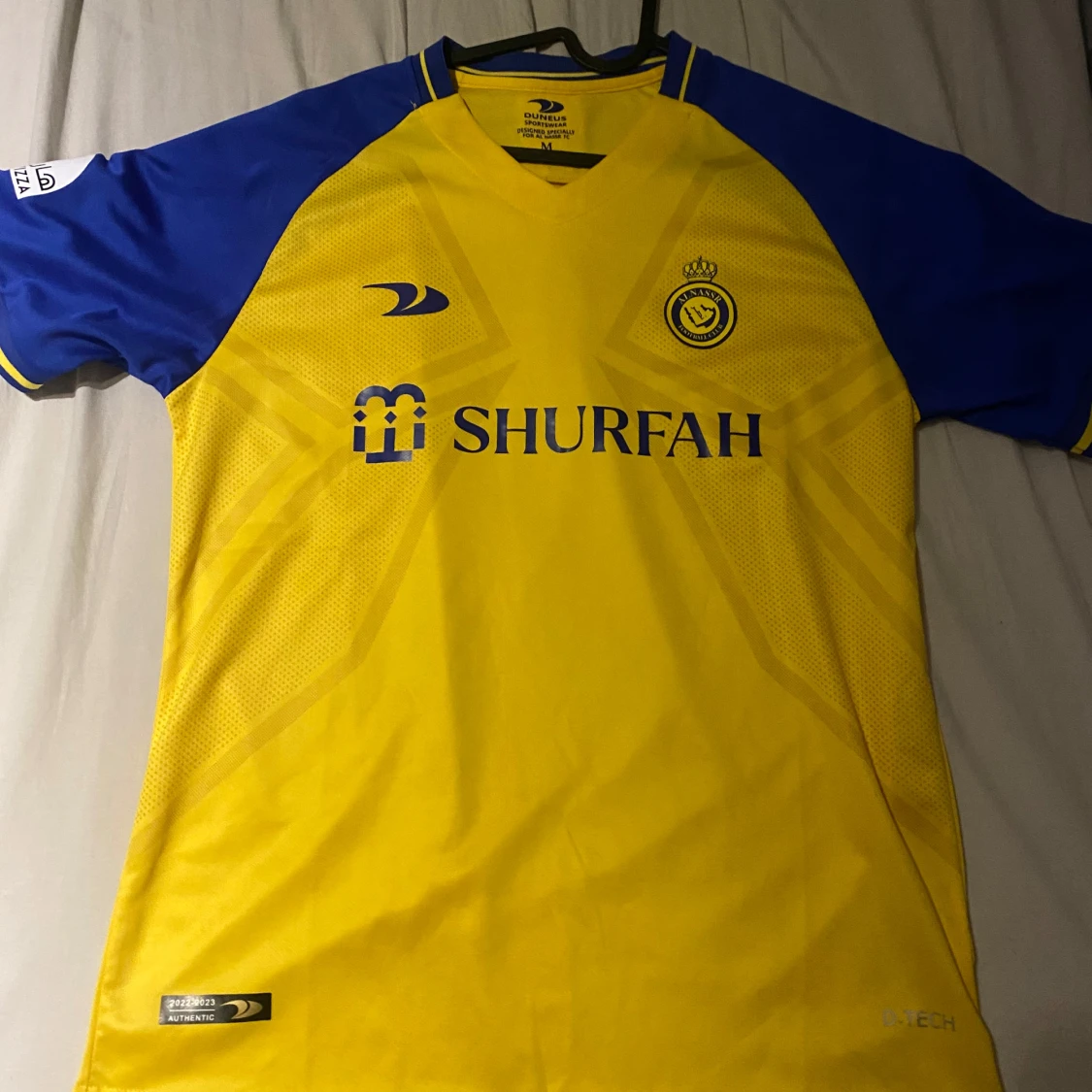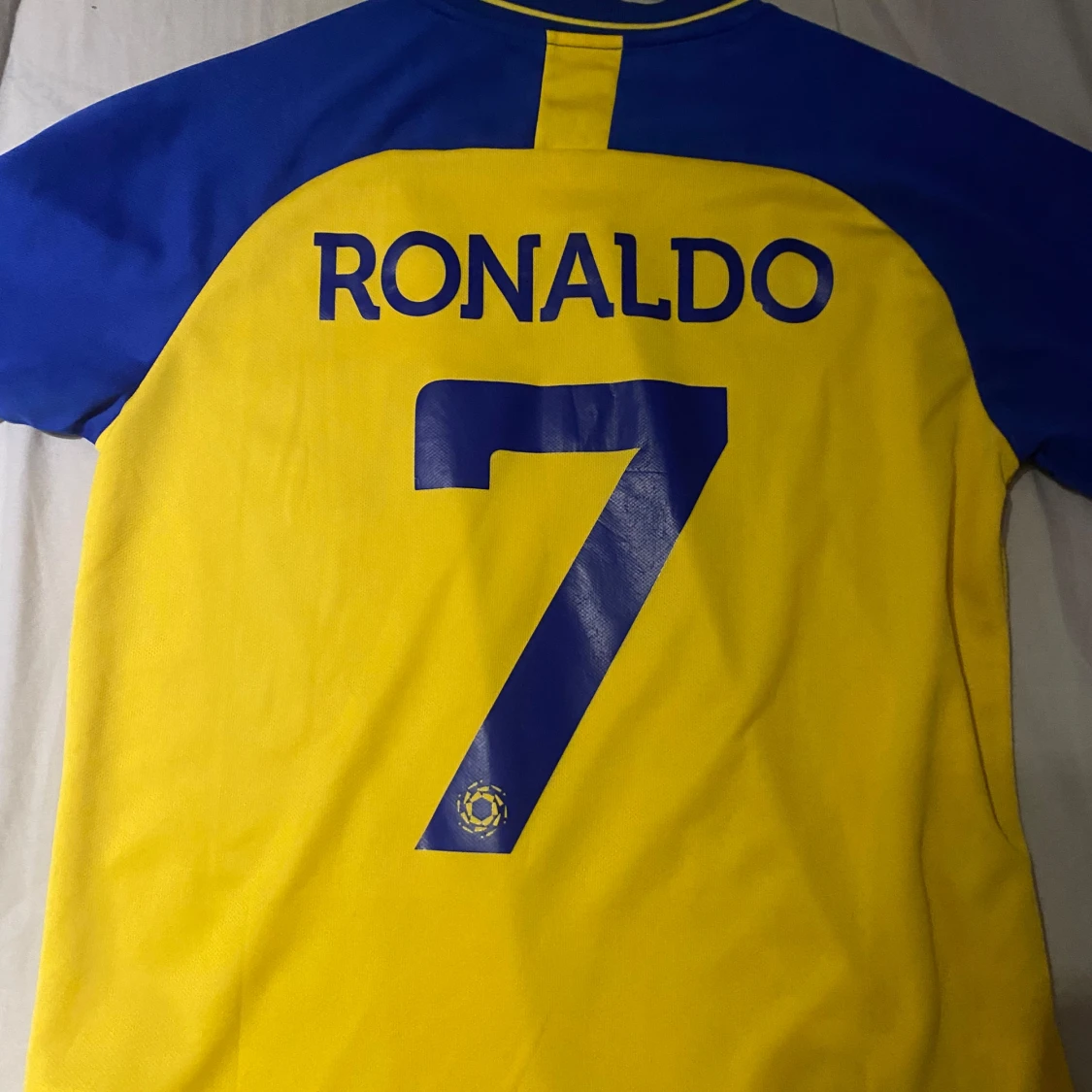 Al Nassr fotbolls tröja med Ronaldo på ryggen! Jätte bra skick nästan ny knappt använd. Pris kan diskuteras!