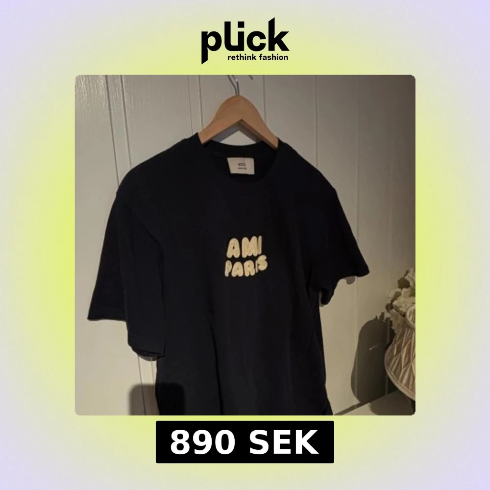 Snygg marinblå t-shirt från Ami Paris. Tröjan är i lite tjockare material och passar mig perfekt som brukar ha M (183). Bara använd ett fåtal gånger