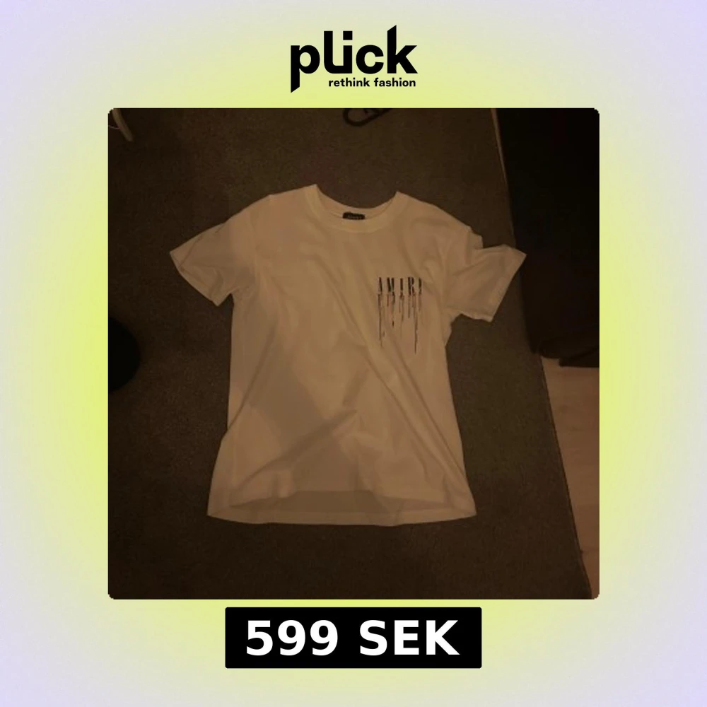 vit t-shirt från AMIRI med tryck fram och bak. Andvänd få gånger skick väldigt fint. Pris ej hugget i sten