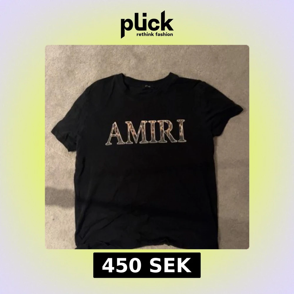 Svart t-shirt från AMIRI med stort tryck av märkesnamnet i vitt och beige på bröstet. Klassisk rund hals och korta ärmar. Perfekt för dig som gillar streetwear och vill sticka ut med en snygg logga.