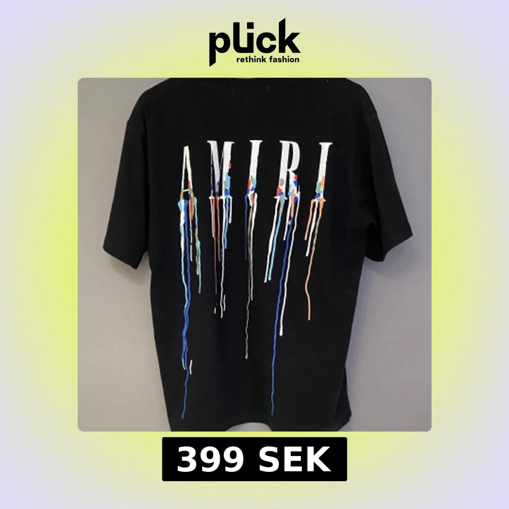 Svart t-shirt från AMIRI i 100% bomull med coolt tryck av loggan och färgstänk som rinner ner på både fram- och baksidan. Kortärmad modell med rund hals och relaxed vibe. Perfekt för dig som gillar streetwear och vill sticka ut med en unik design.