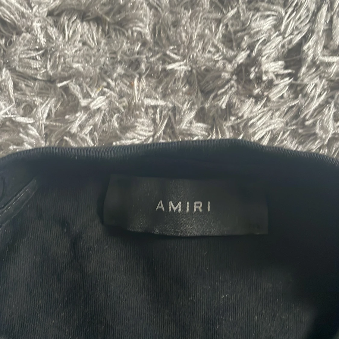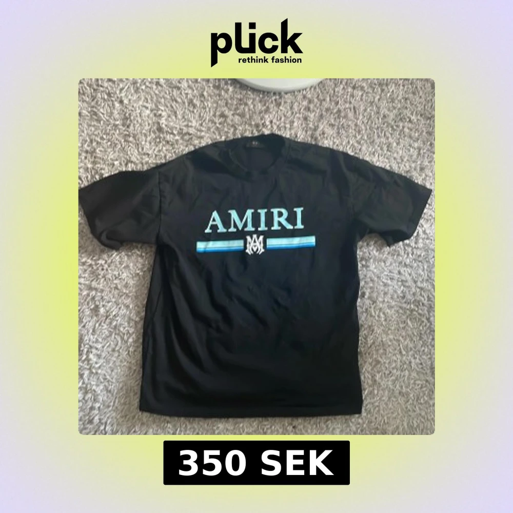 Oanvänd Svart t-shirt från AMIRI i bomull med stort blått och vitt logotryck på bröstet. Klassisk passform med rund hals och korta ärmar. Kan även sänka vid snabb affär.