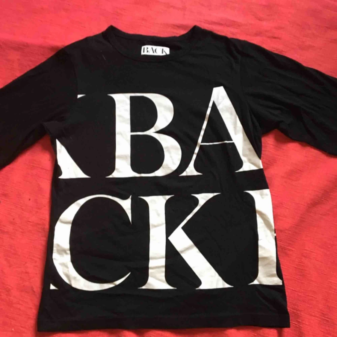 Mycket fin t-shirt av märket BACK. Svart med vitt tryck över hela framsidan. Väldigt fin mjuk kvalite och sitter som ett smäck på mig med storlek M. Använd endast en gång dock, så i gott skick.