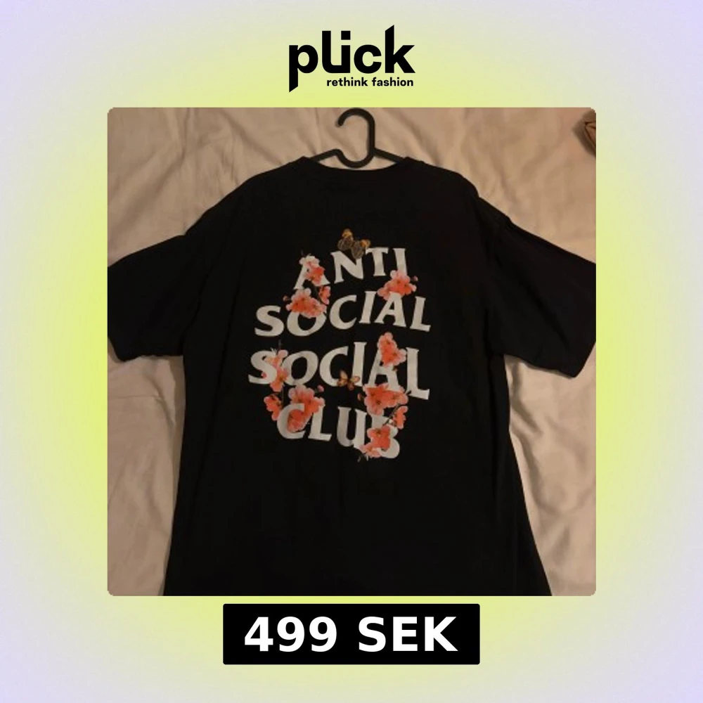 Riktigt fet Anti social club T-shirt med en unik design på ryggen. Perfekt för dig som gilllar tröjor med tryck på baksidan. Använts under 10 gånger pga byte i stil. Skriv gärna om frågor!
