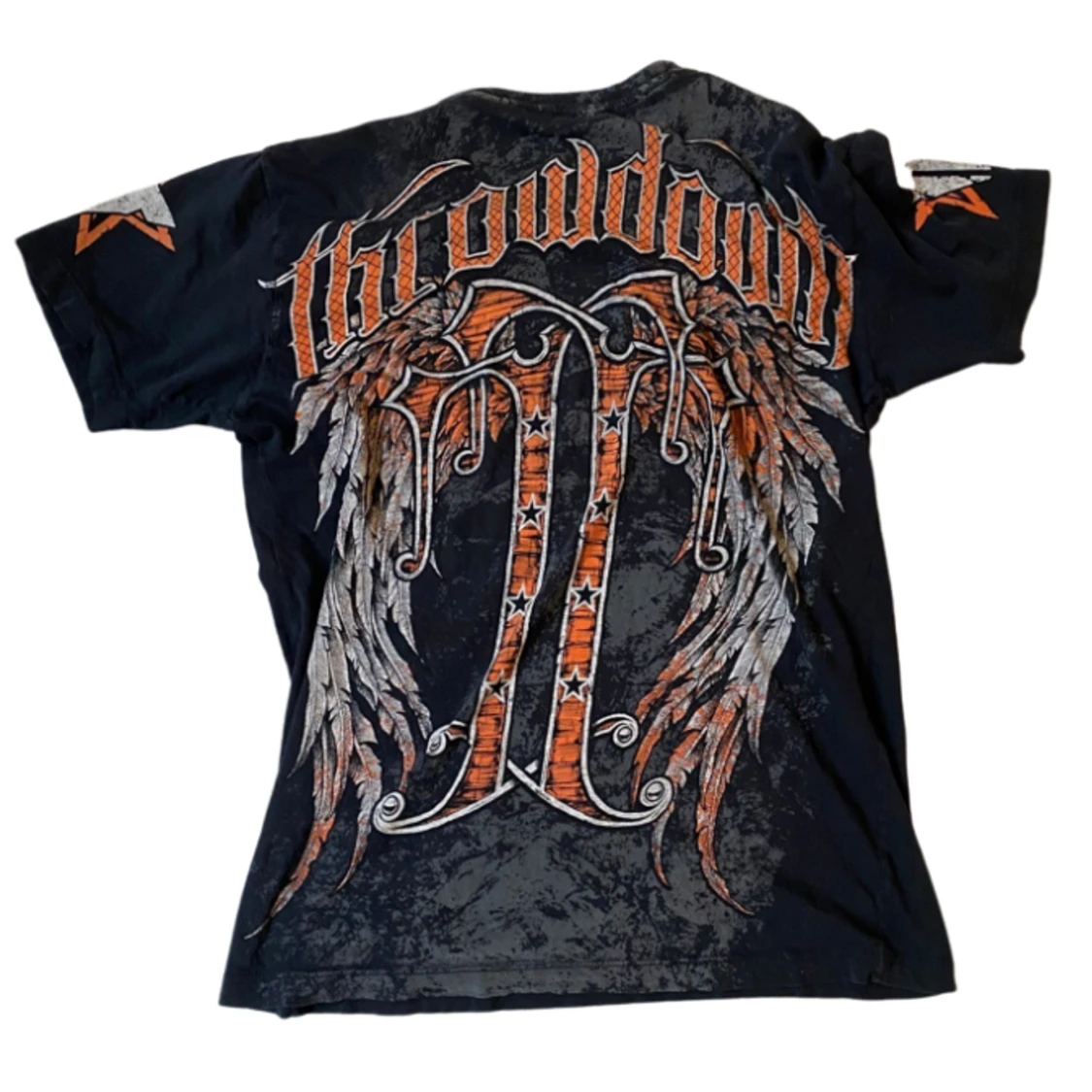 Cool vintage t shirt med coolt tryck på baksidan. Storlek M passar även L