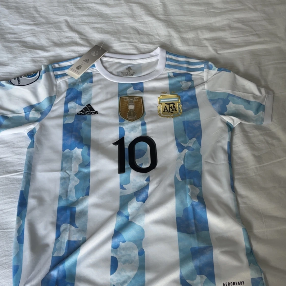 Säljer en eftertraktad officiell Argentina landslagströja från Adidas med Messi och nummer 10 på ryggen. Tröjan är helt ny aldirg använd aldirg testad.