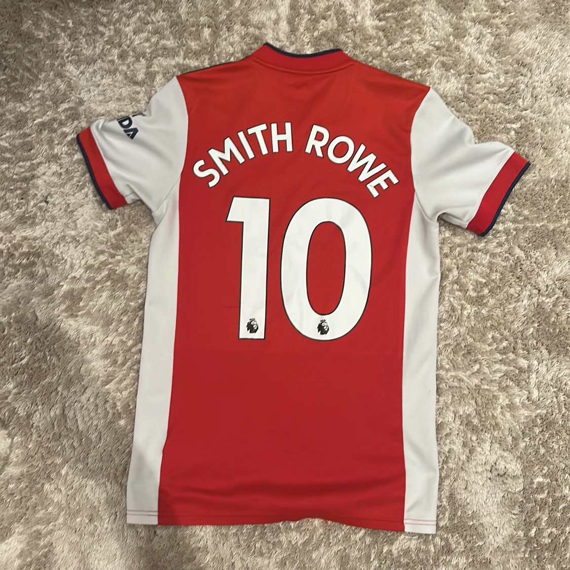 Säljer nu denna feta Emile Smith Rowe tröjan från säsongen 21/22.🍾 Den är i S. passar runt 175. Finns några små defekter (vissas på bilderna) annars riktigt fint skick. Bara att fråga på🔴⚪️