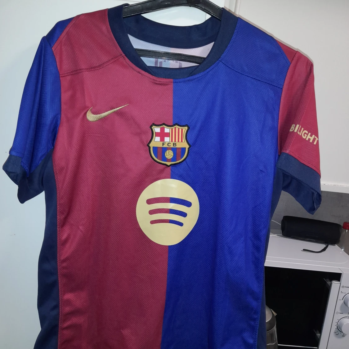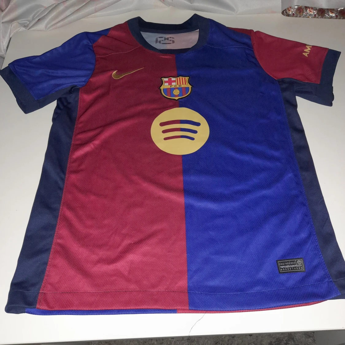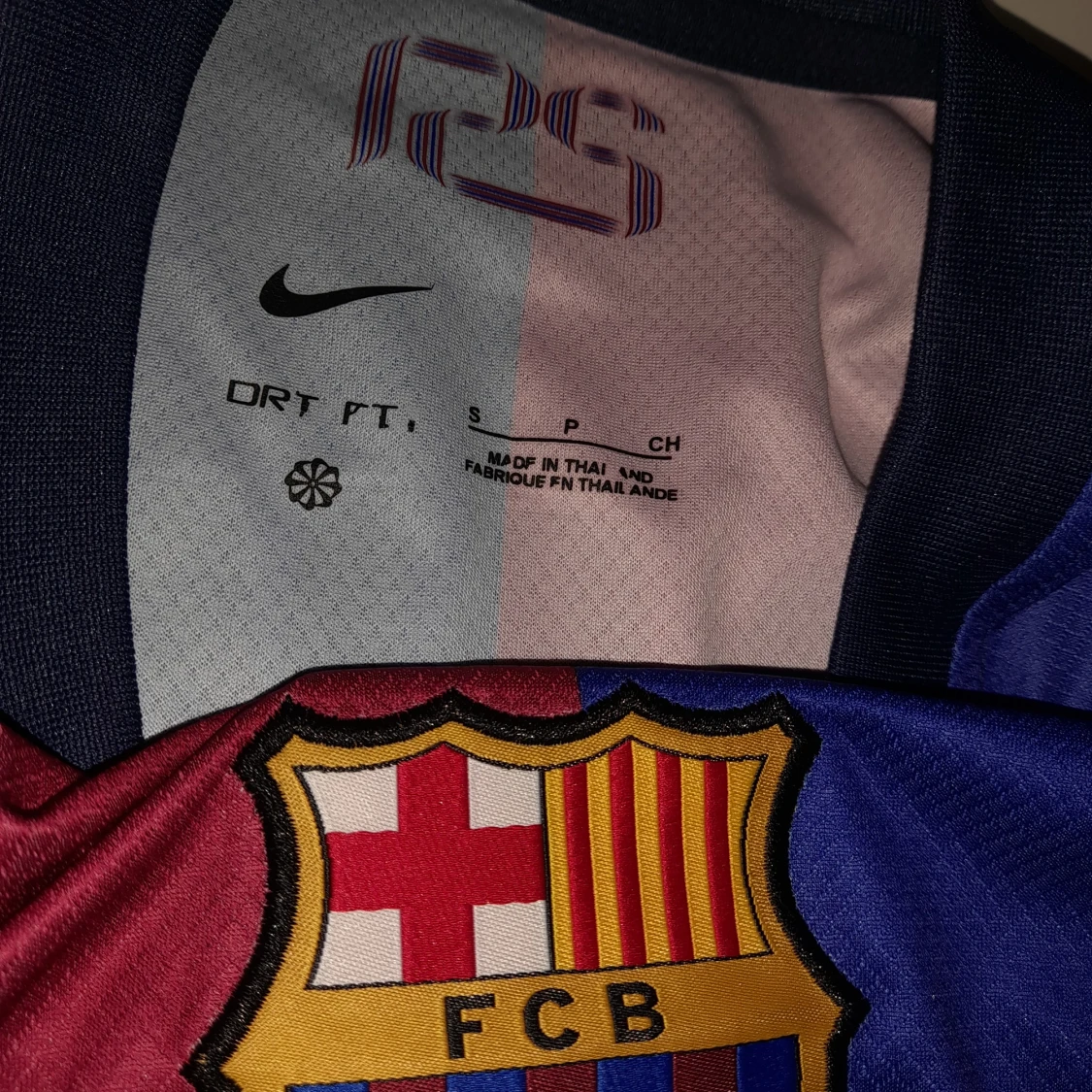 Säljer en blåröd FC Barcelona fotbollströja från Nike med Gavi och nummer 6 på ryggen. Tröjan har klubbens emblem och sponsorlogga på framsidan. Kortärmad design med klassiska färger och detaljer.