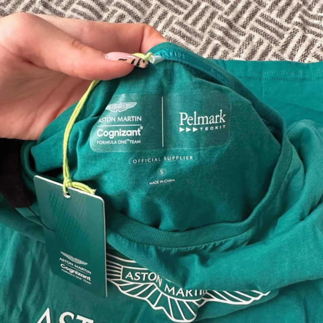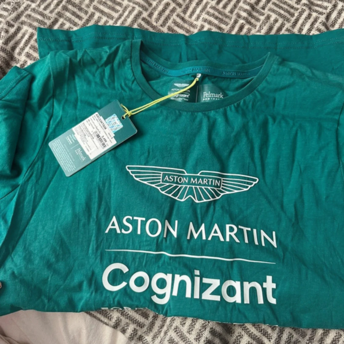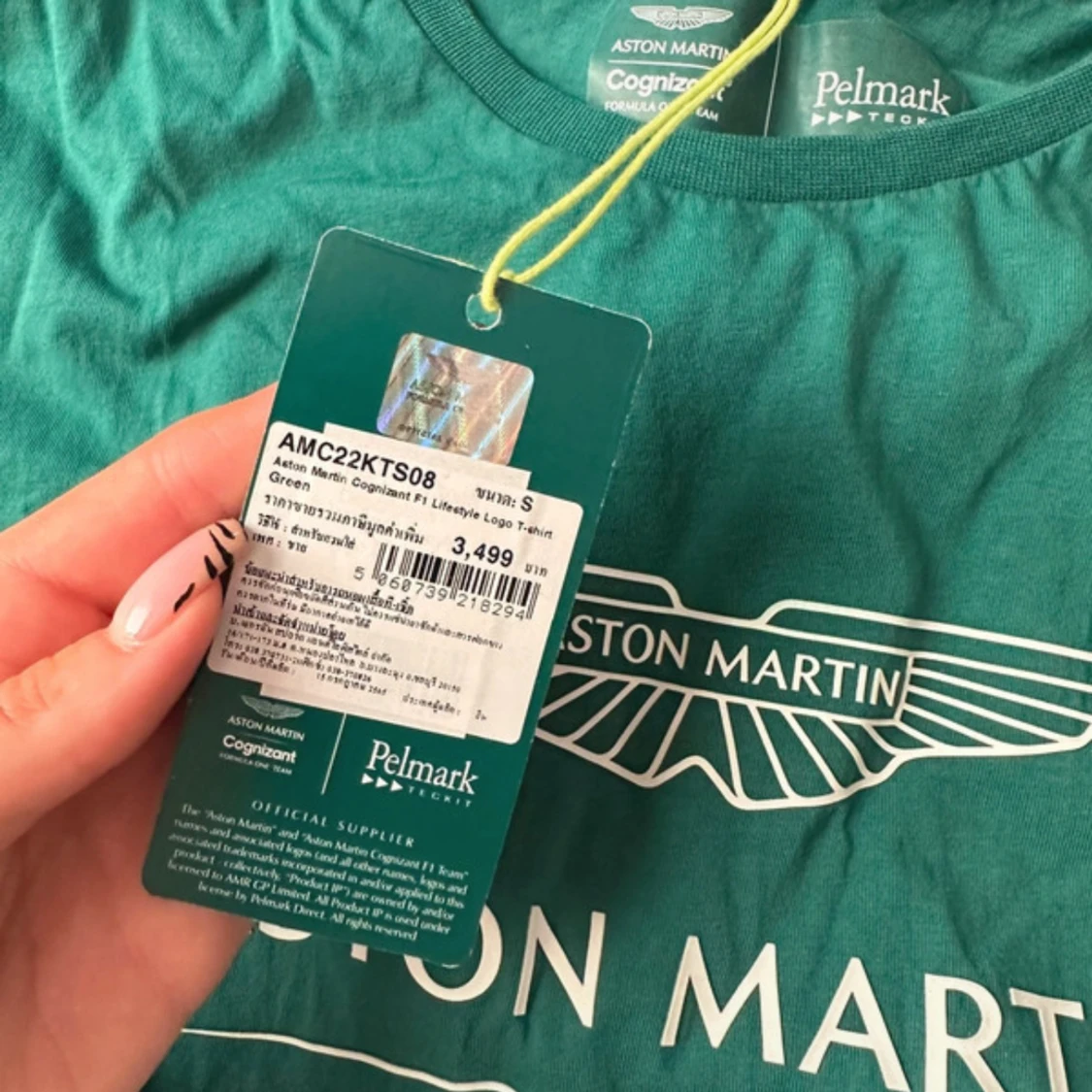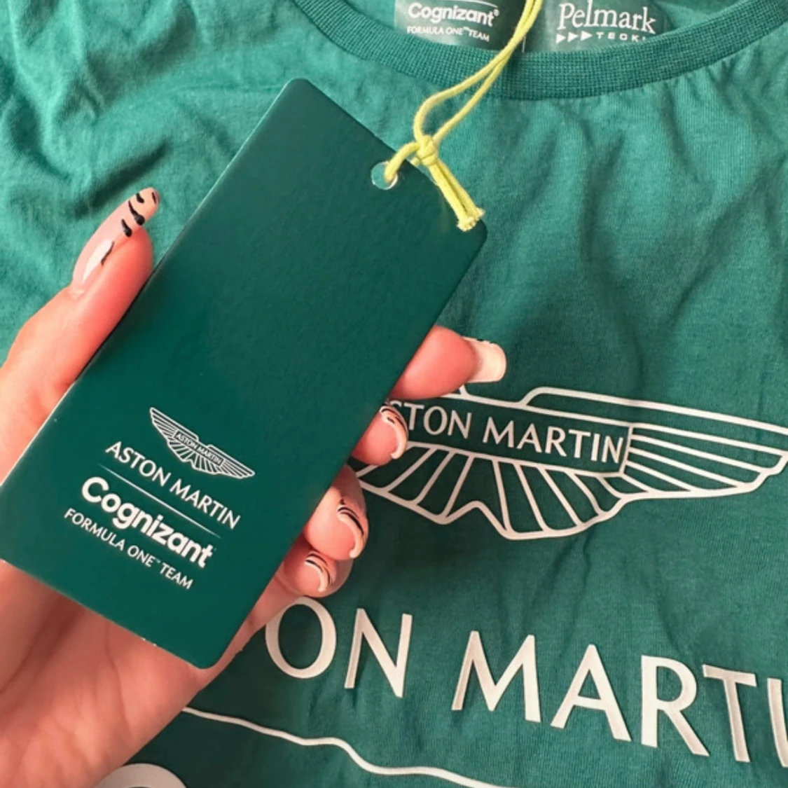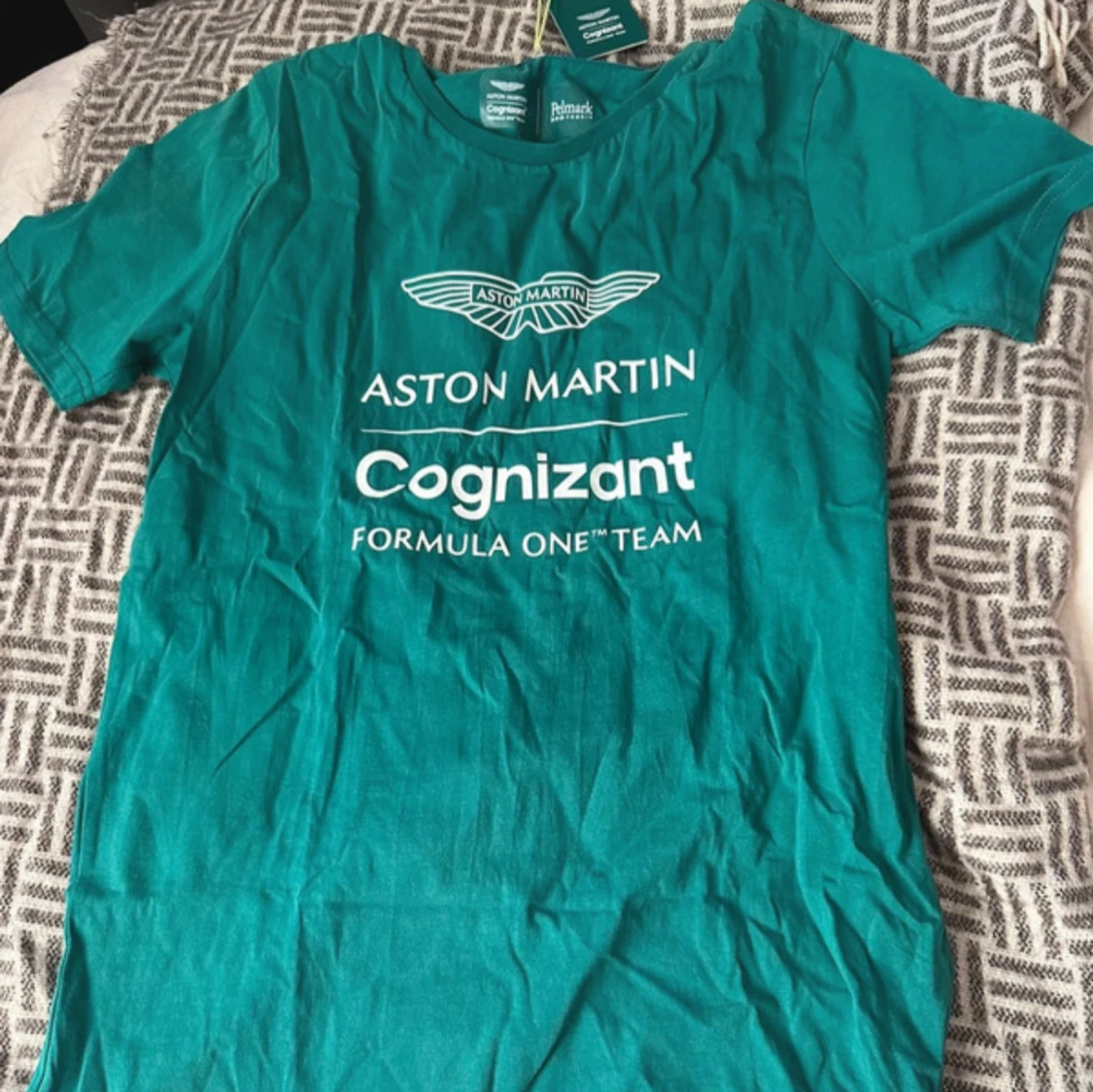 Snygg grön t-shirt från Aston Martin Cognizant Formula One Team, tillverkad i mjuk bomull. Klassisk passform med rund hals och tryck framtill. Perfekt för dig som gillar motorsport, helt ny köpt i Thailand från officiellt butik