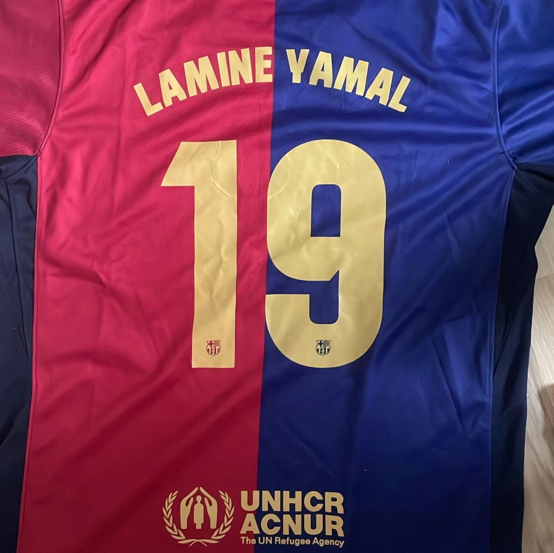 En oanvänd Barca, Nike t-shirt med lapparna på och på ryggen står det Lamine Yamal, nummer 19🥰