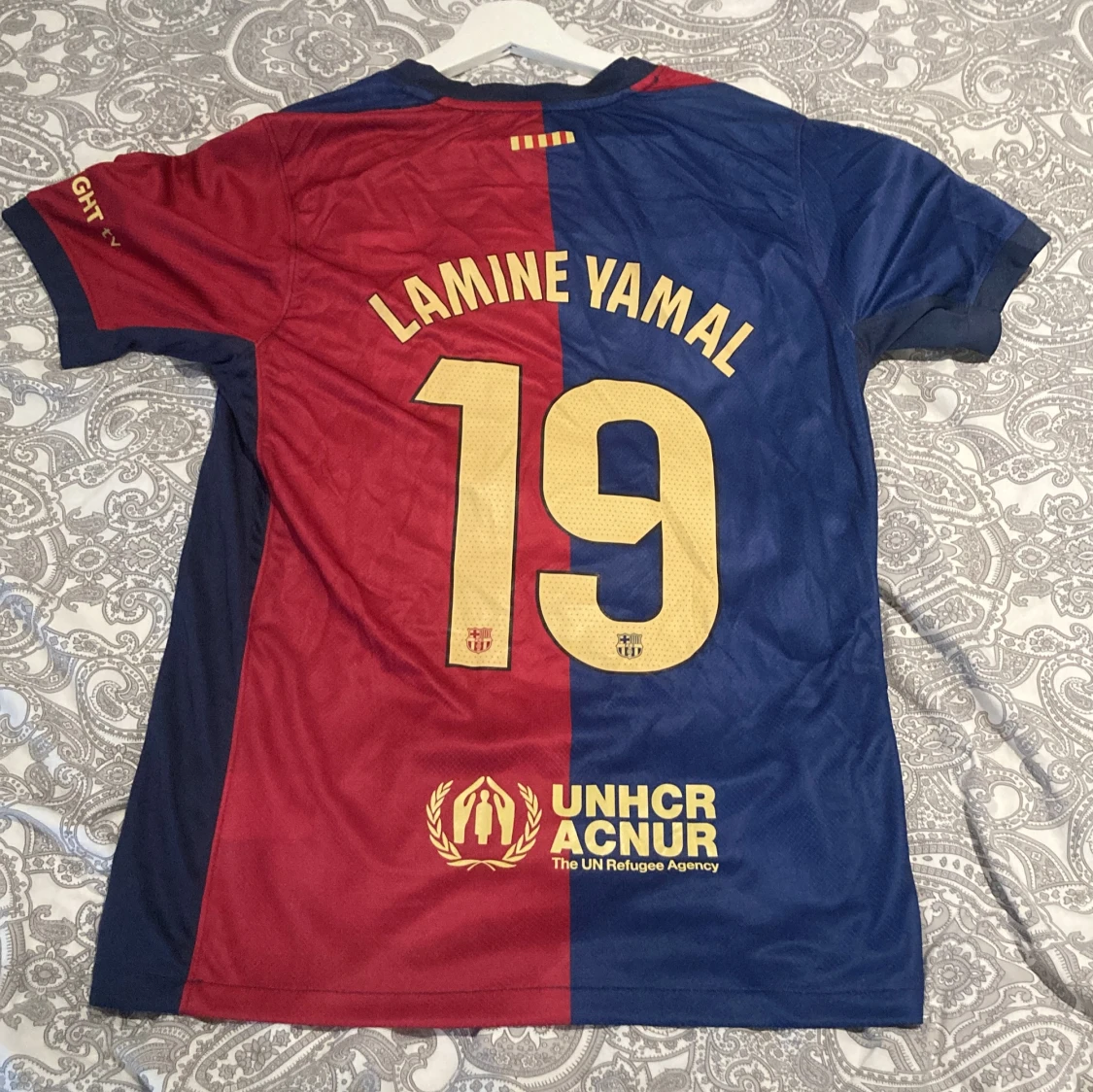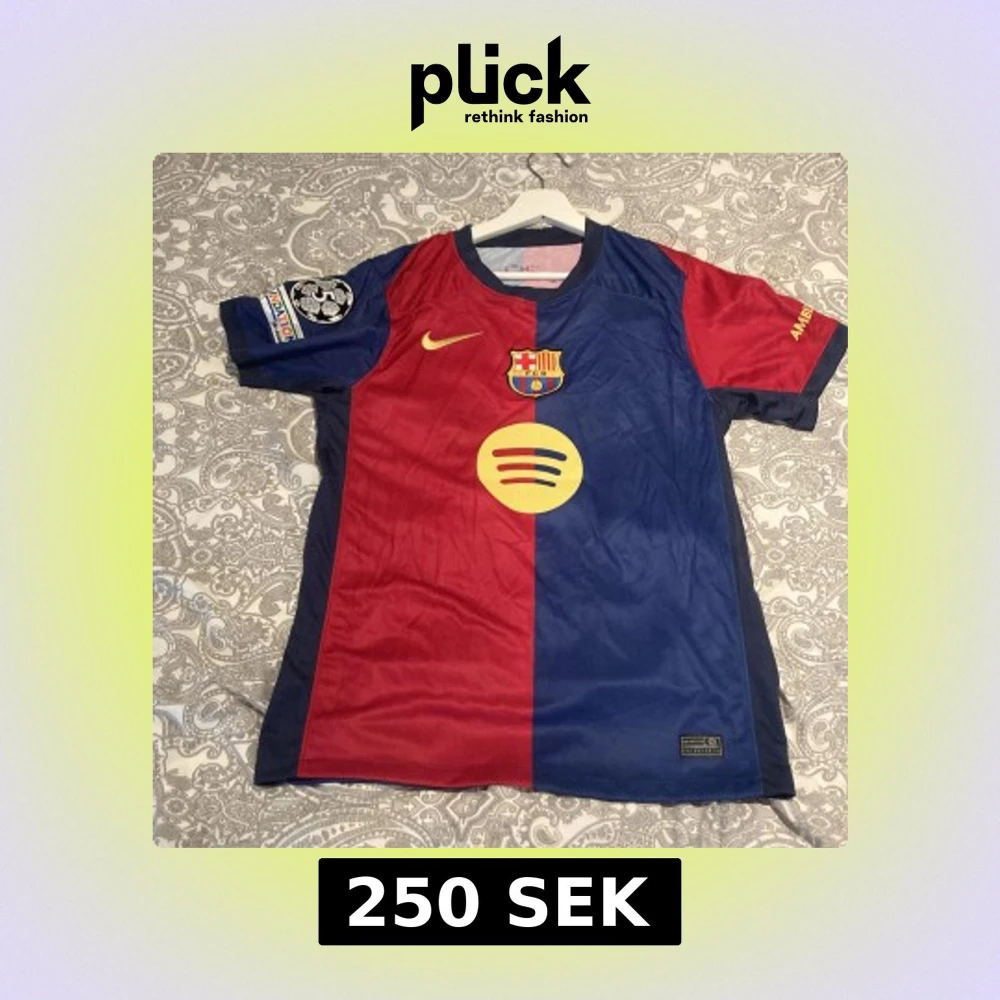 Säljer barcelonas hemmatröja med lamine yamal på ryggen med cl patch