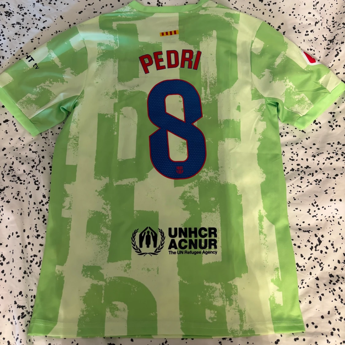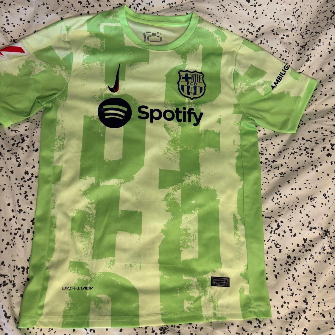 Säljer Barcelona fotbollströja i storlek S passar M också, aldrig använd!