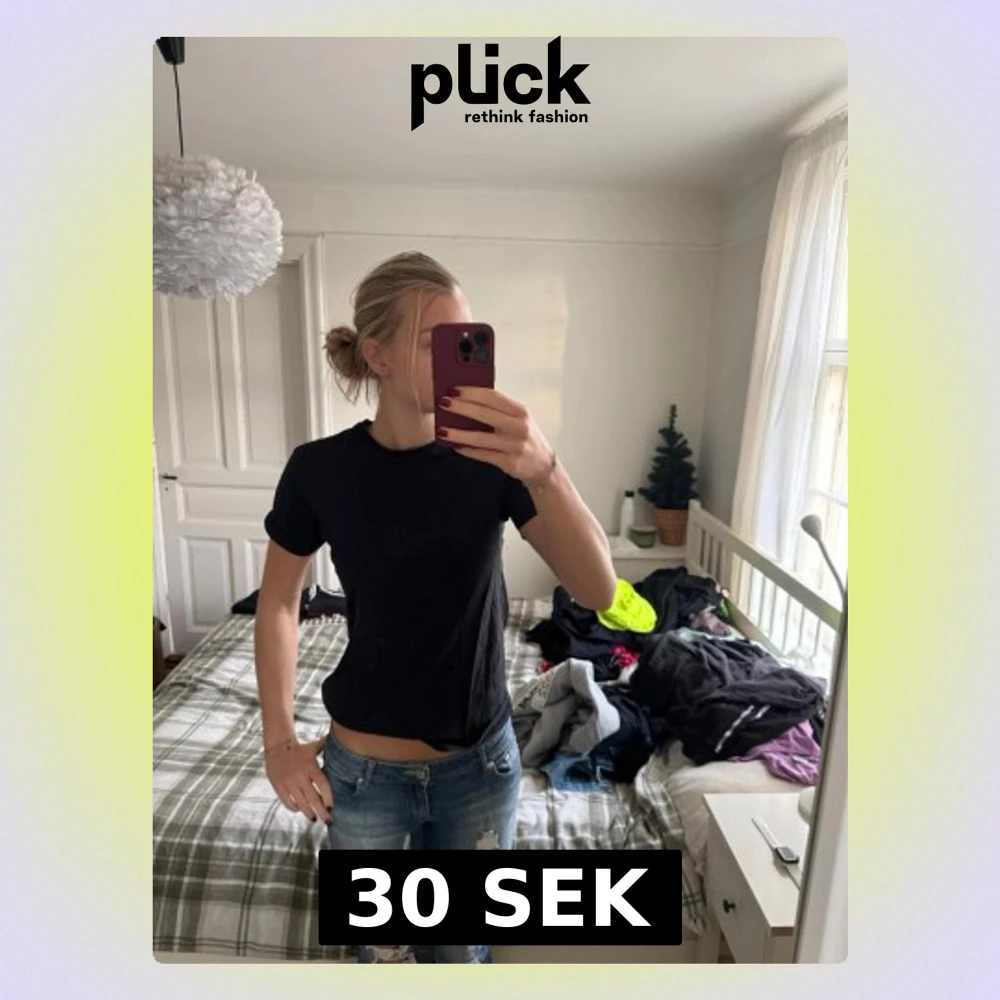 Enkel svart t-shirt från KappAhl i storlek S. Modellen är klassisk med rund hals och korta ärmar. T-shirten är i mjuk bomull och har en normal passform som funkar till allt. Perfekt basplagg för garderoben.