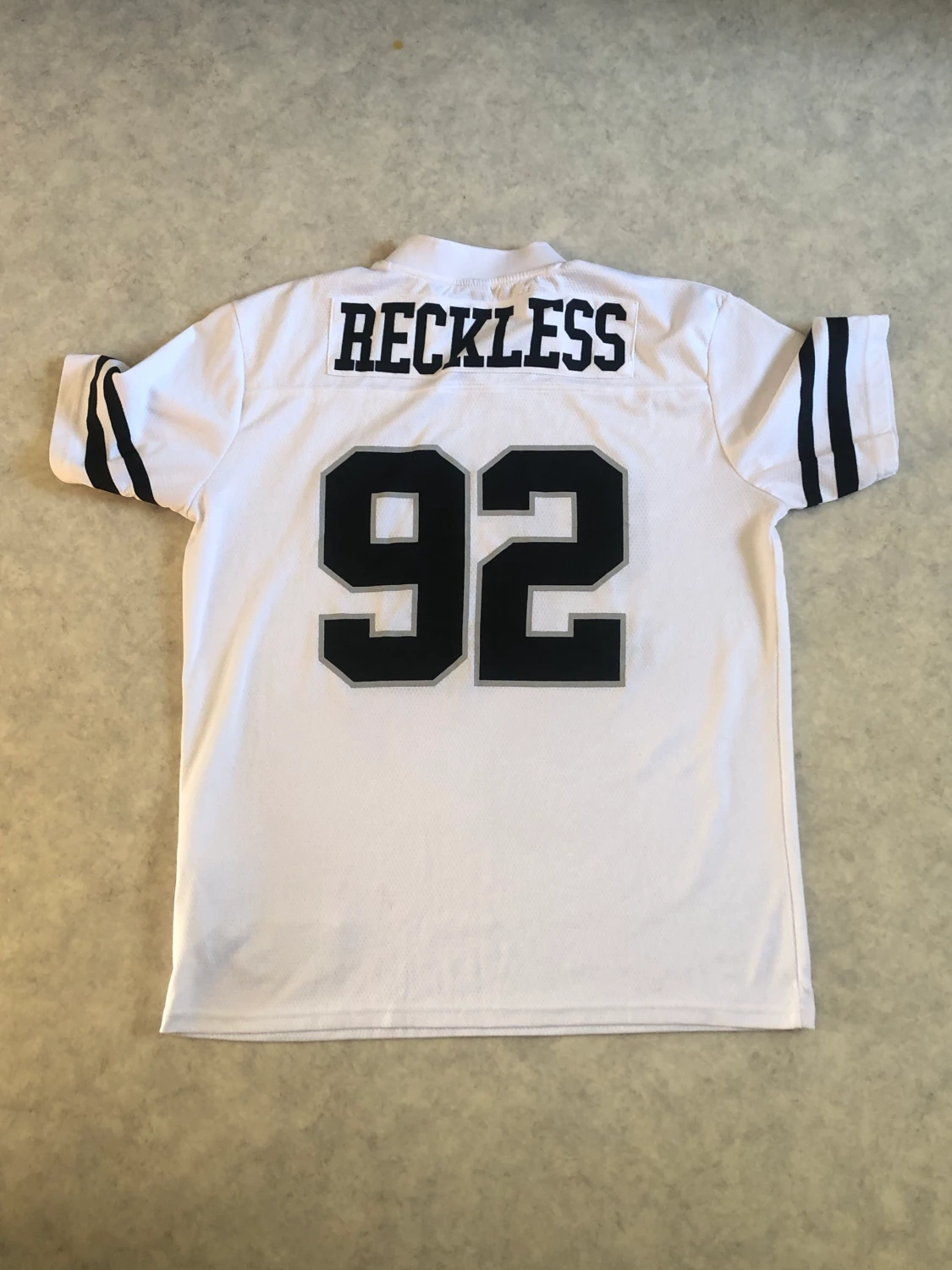 just nu säljer jag en Reckless tröja. Jag är inte säker till vilken sport den är men nånstans med Baseball eller Amerikansk Fotboll. Jag fick den av brosan och är helt ny. Str S men är lite oversized