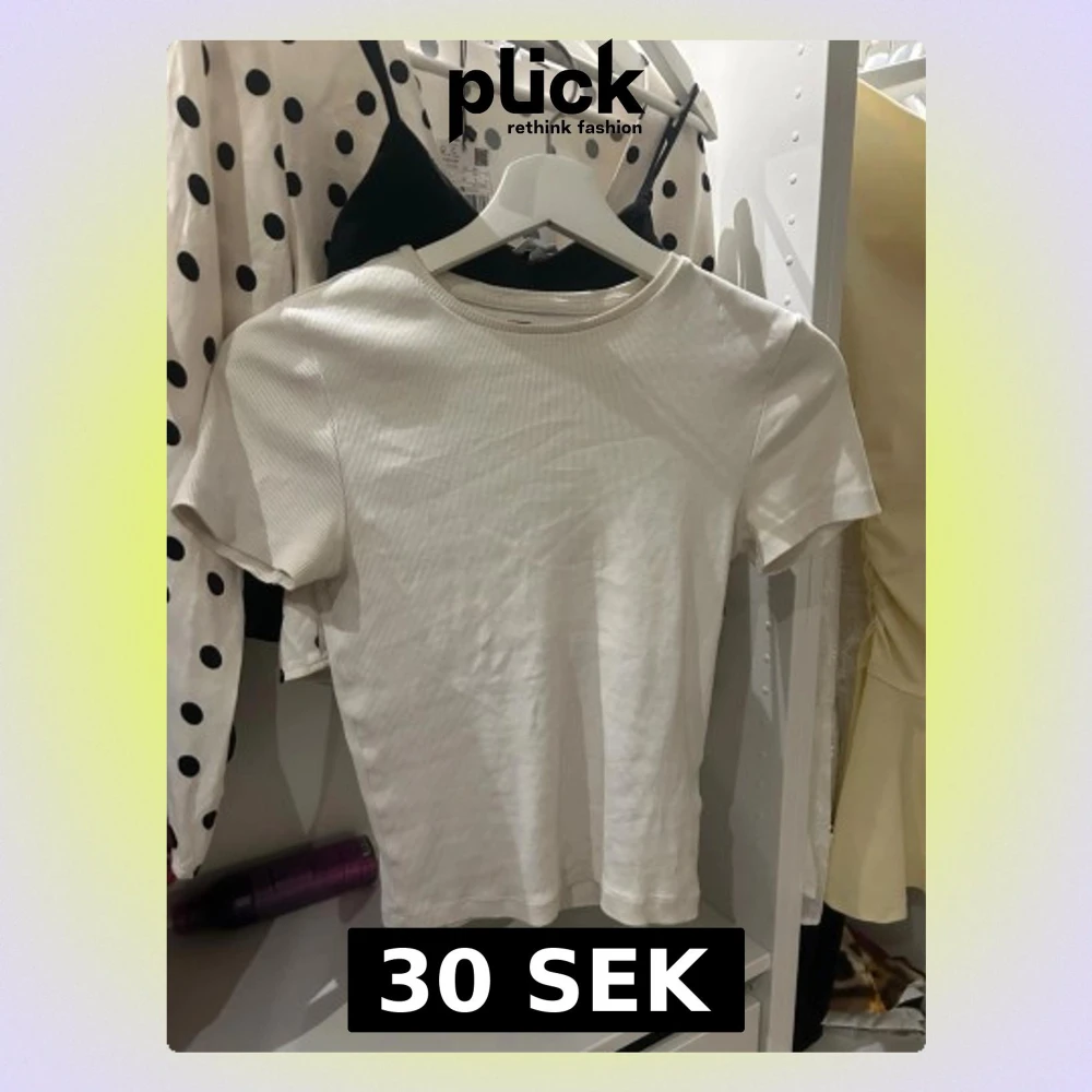 En enkel och stilren vit t-shirt med ribbad struktur och rund hals. T-shirten är kortärmad och har en tight passform som sitter snyggt på kroppen. Perfekt att matcha med jeans eller kjol för en clean look.