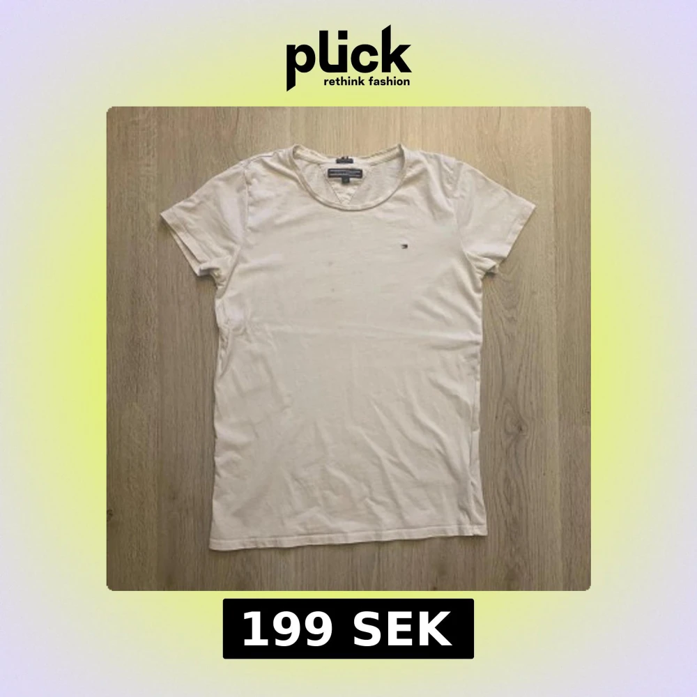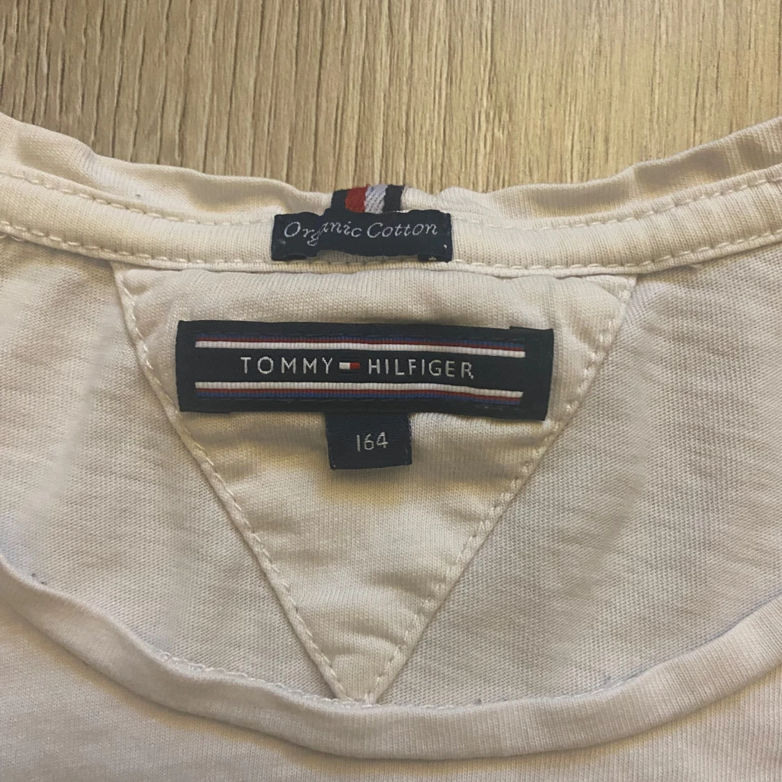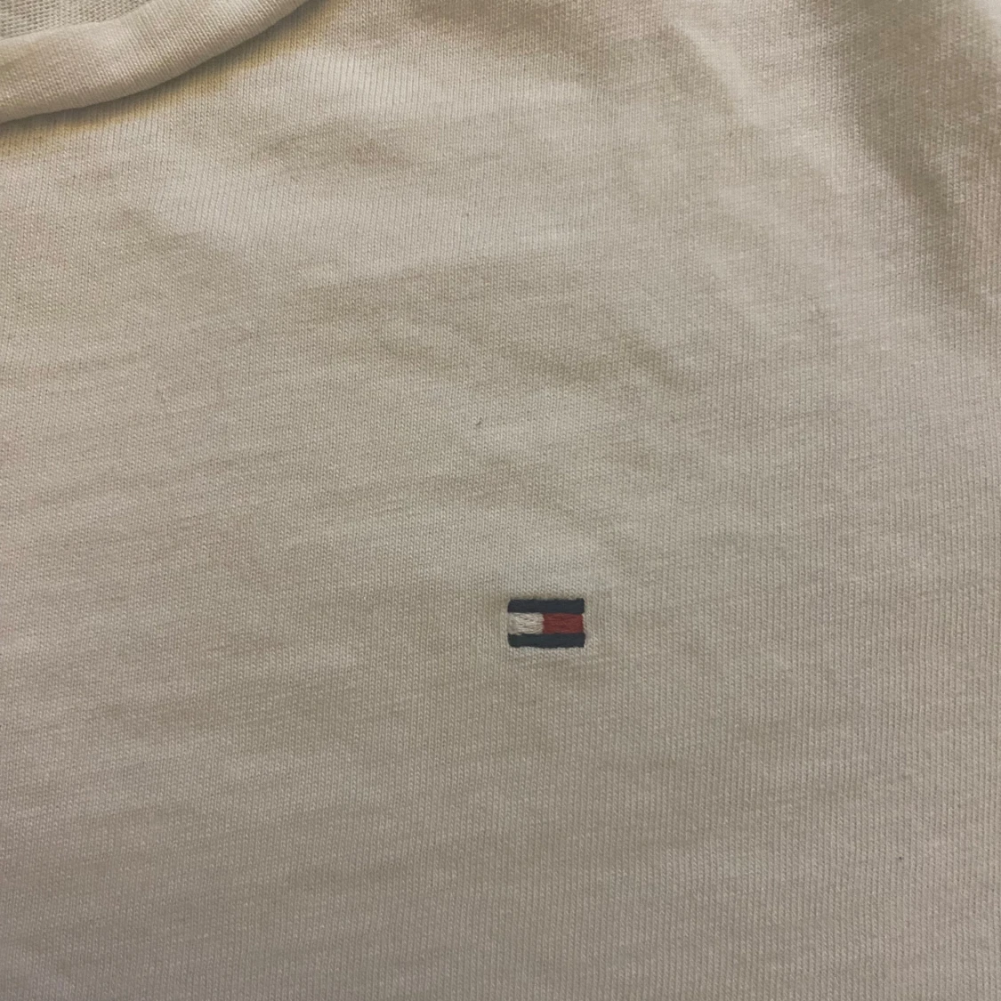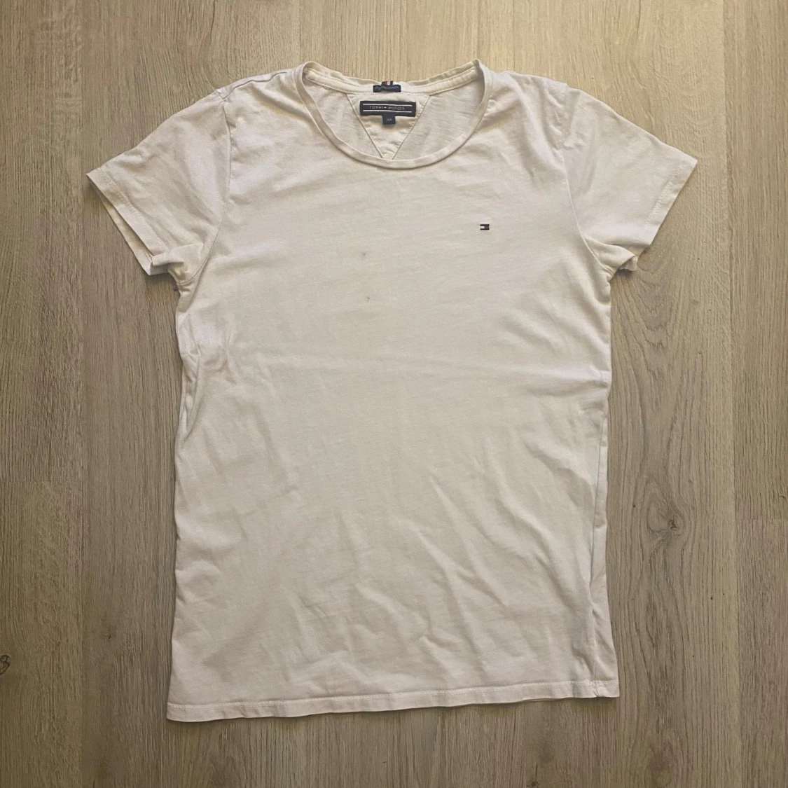 Vit t-shirt från Tommy Hilfiger. Klassisk passform med rund hals och korta ärmar. En liten logga på bröstet. Tröjan har fått några små fläckar på bröstet som man ser på bild fyra men det är inget som märks. Skriv om du har frågor o läs helst min bio innan du köper!