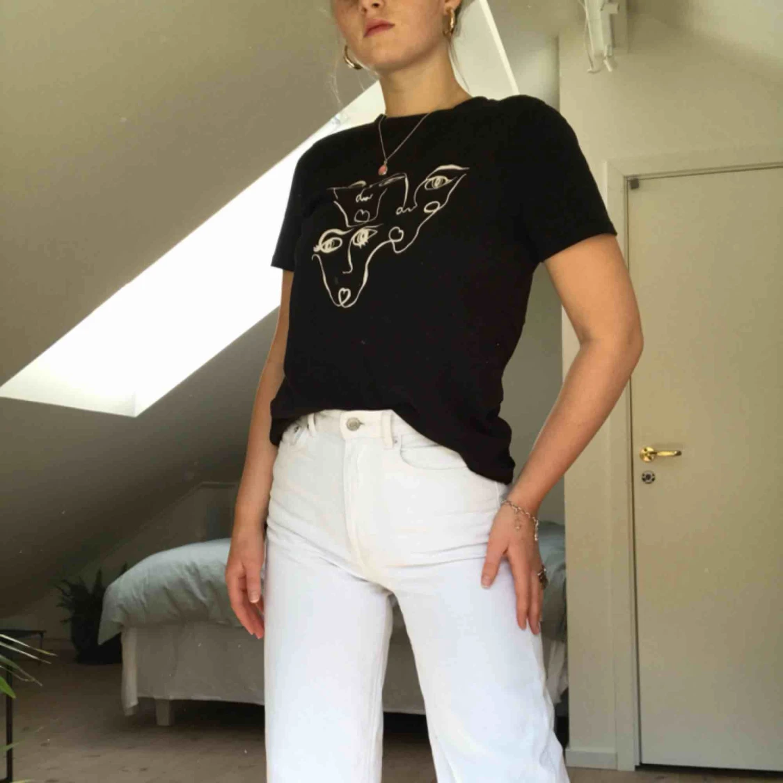 Snygg T-shirt med coolt print från NA-KD. Säljer då den inte kommit till så mycket användning och därav i bra skick! Passar XS-M beroende på hur man vill att den ska sitta. Köpare står för frakt☺️