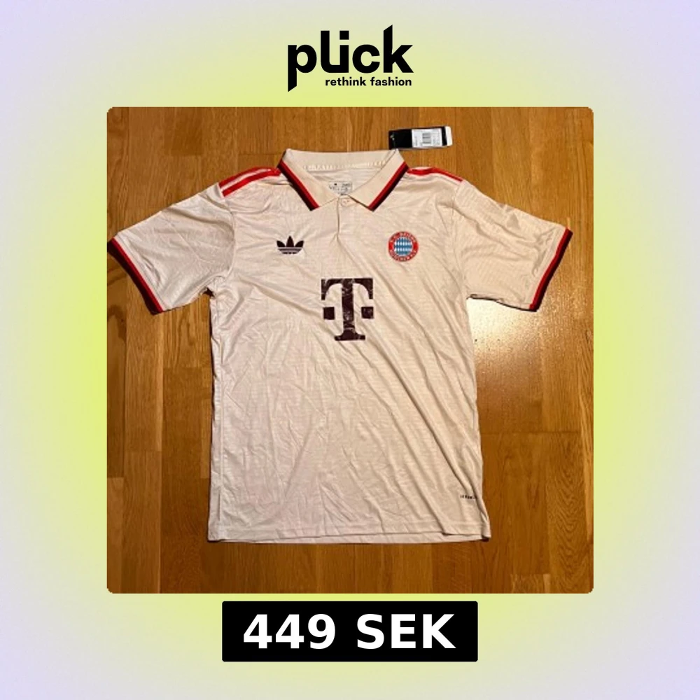 Snygg vit Bayern München fotbollströja från Adidas med klassisk krage och röda detaljer på axlar och ärmslut. Broderat klubbmärke på bröstet, Adidas-logga och stor T-sponsor framtill. Tillverkad i lätt polyester med Aeroready-teknologi. Har legat hemma ett tag pga att den var för att den var för stor och har ej orkat sälja. Kan sänka pris vid snabb affär!