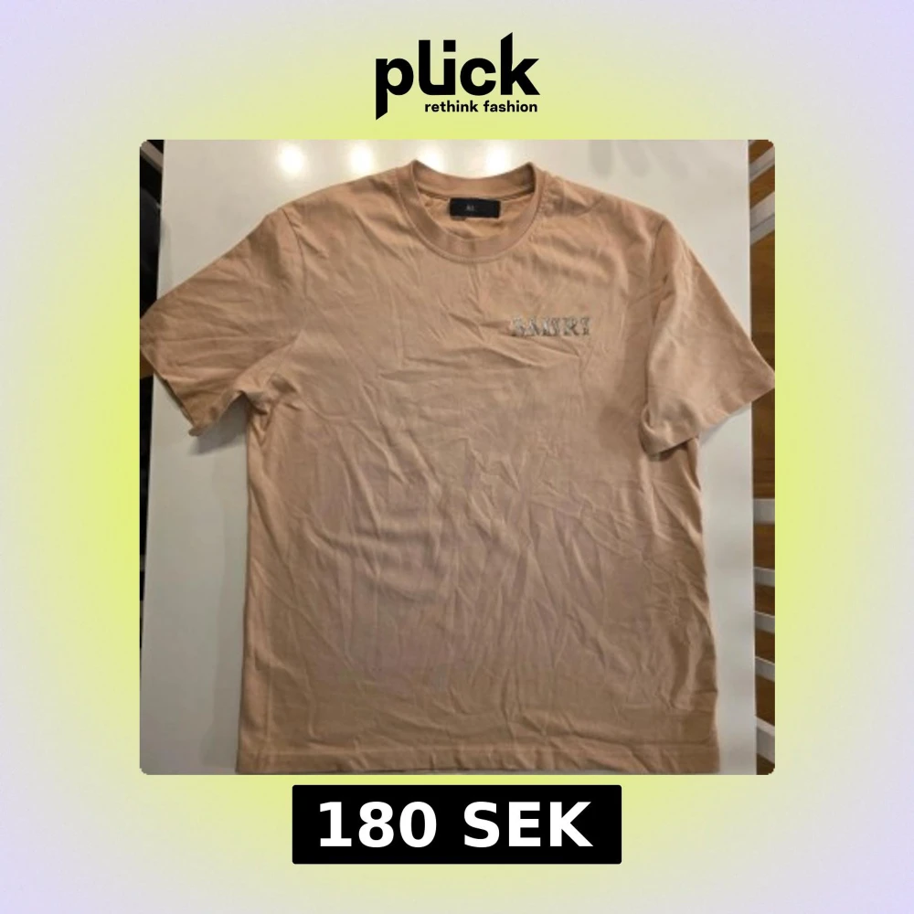 Snygg beige t-shirt från AMIRI i 100% bomull. Stor AMIRI-logga på ryggen och mindre logga på bröstet. Klassisk passform med rund hals och korta ärmar. Metallbricka med AMIRI vid nederkanten ger en exklusiv touch. Jättesnygg oversize t-shirt
