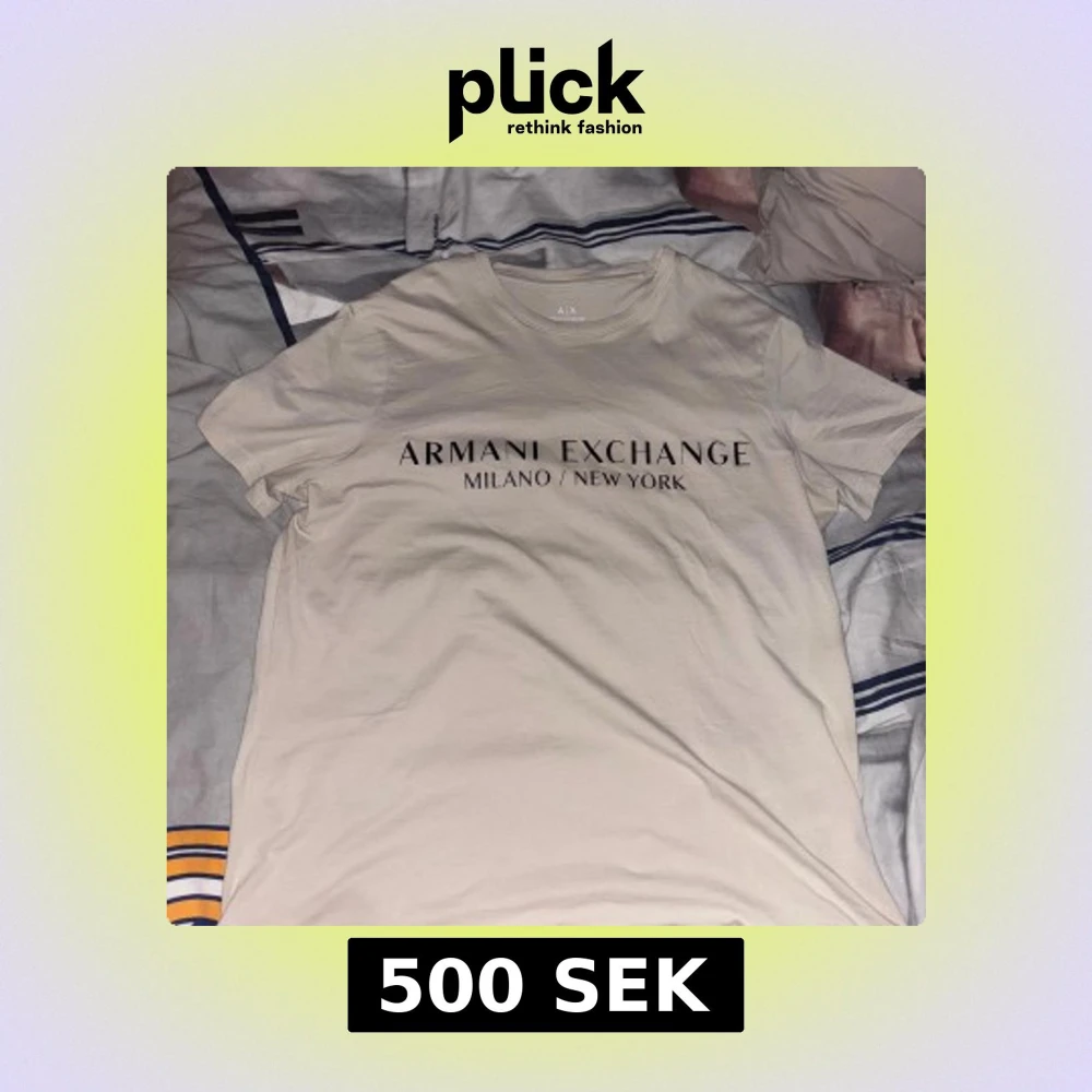 Snygg beige t-shirt från Armani Exchange i storlek XL. T-shirten har svart tryck med texten 'ARMANI EXCHANGE MILANO / NEW YORK' på bröstet. Klassisk rund hals och korta ärmar. Slim fit modell i mjuk bomull för en clean och modern look. Den är i storlek XL men passar L eftersom den är slim fit modell