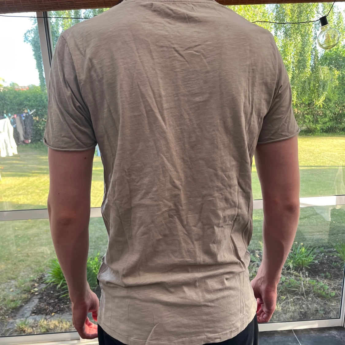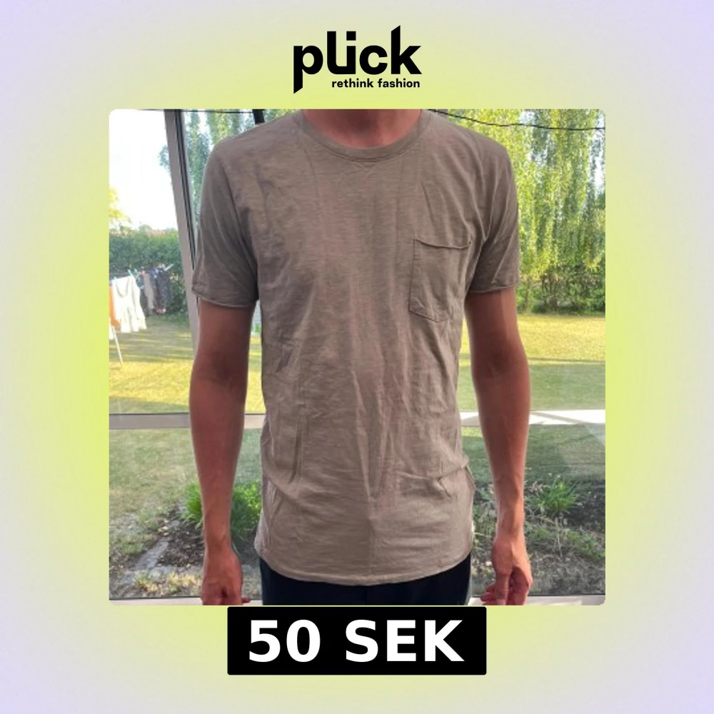 Beige basic t-shirt med bröstficka