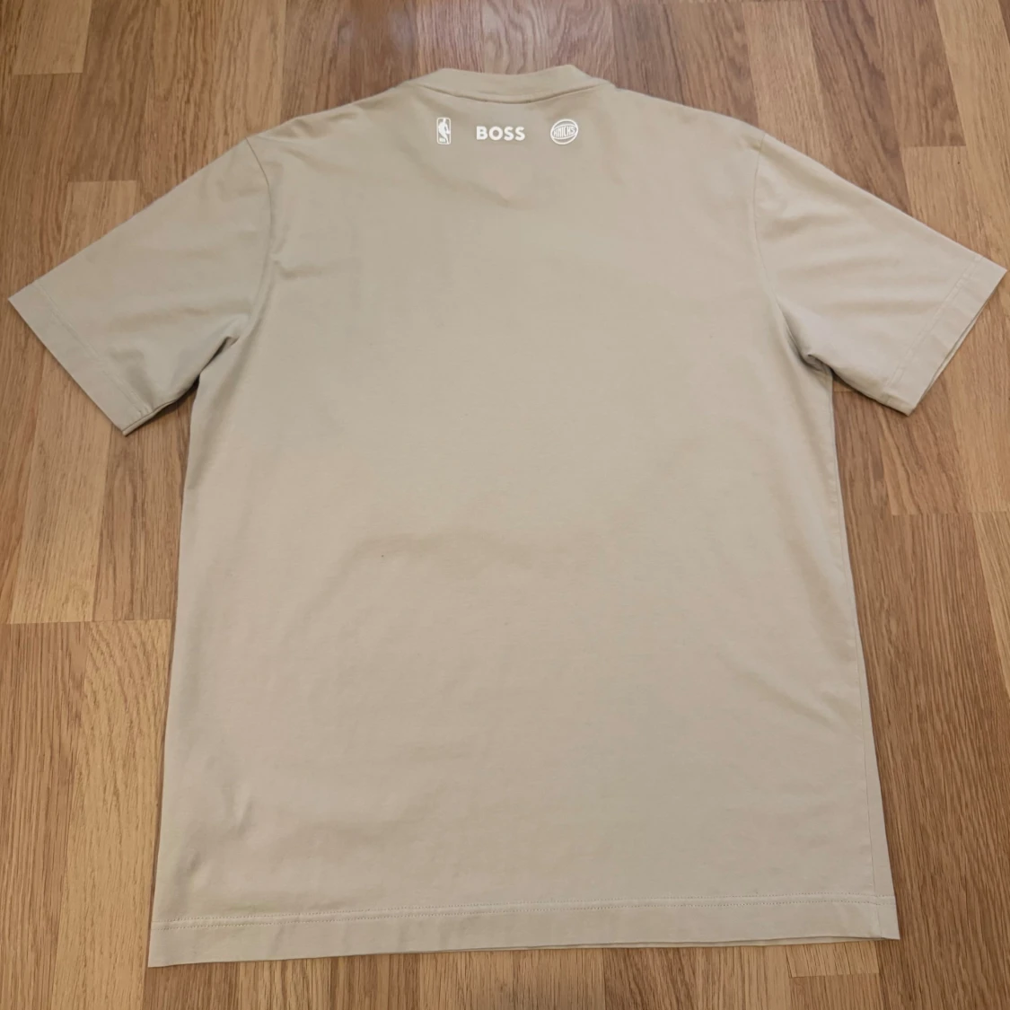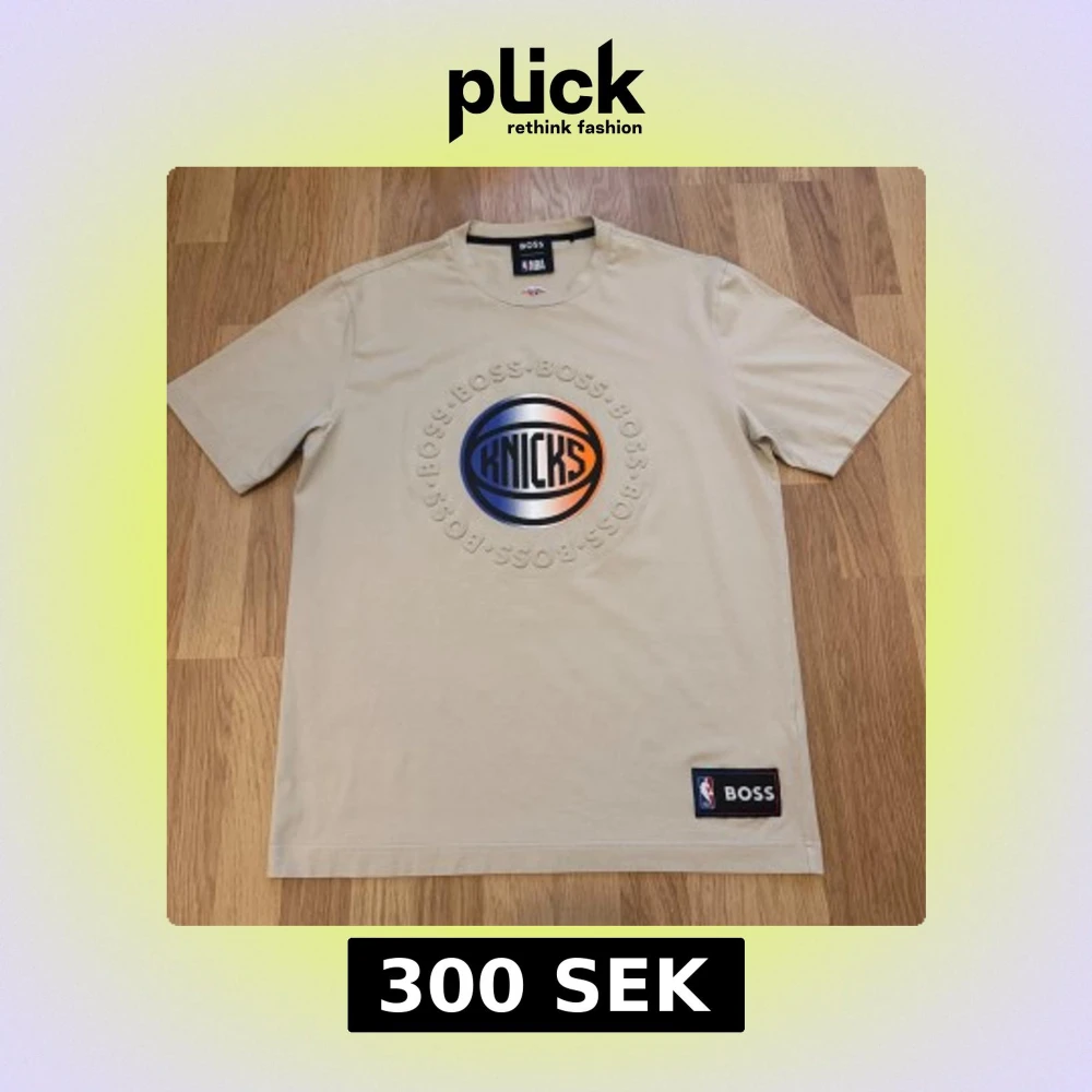 Beige t-shirt från BOSS x NBA med New York Knicks-logga i blått och orange framtill. Rund hals, korta ärmar och patch med NBA och BOSS vid nederkanten. Skön bomullskvalitet och clean design, perfekt för dig som gillar basket och streetstyle.