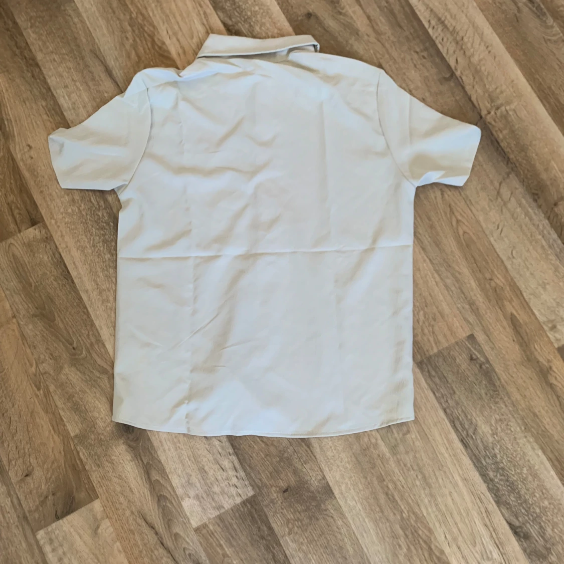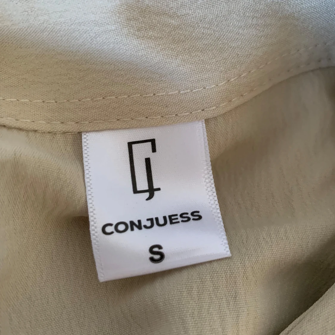 Säljer en oanvänd stilren beige skjorta från Conjuess i storlek S. Skjortan har korta ärmar, klassisk krage, bröstficka och knäppning framtill. Perfekt för en clean och enkel look.
