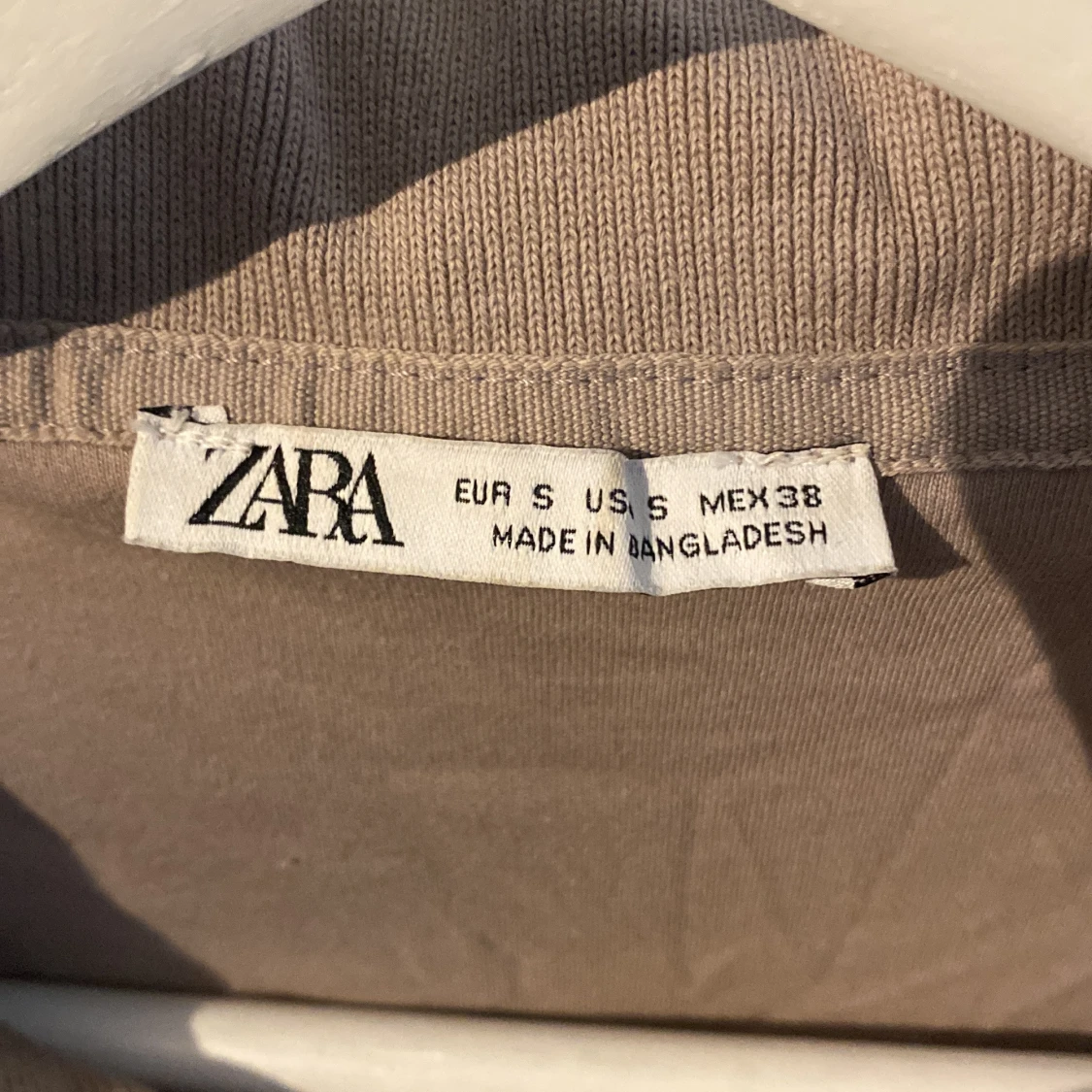 Säljer en stilren beige pikétröja från Zara i storlek S. T-shirten har klassisk krage och korta ärmar, perfekt för en clean och enkel look. Tillverkad i mjuk bomull som känns skön mot huden.