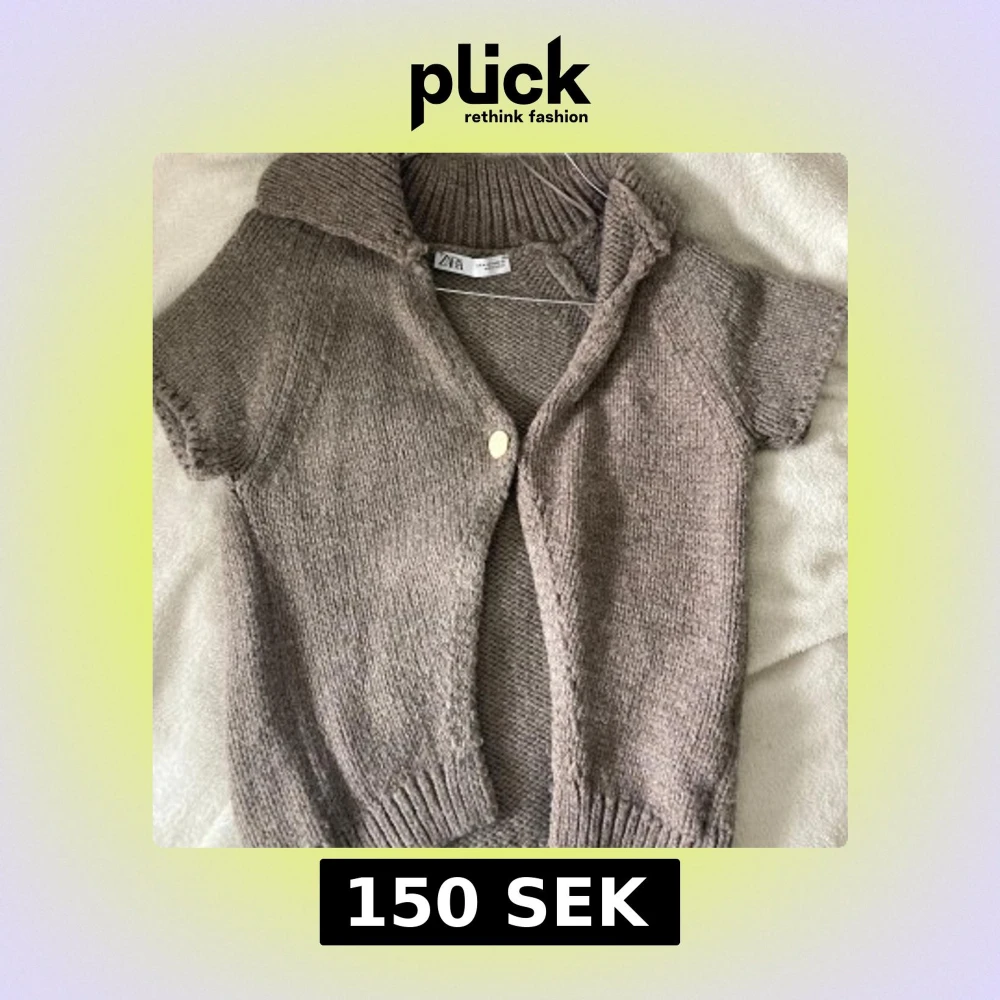 Mysig beige stickad väst från Zara med korta ärmar och stor krage. Västen har en enkel knapp framtill och ribbade detaljer vid krage och nederkant. Perfekt att slänga över en långärmad tröja för extra värme.