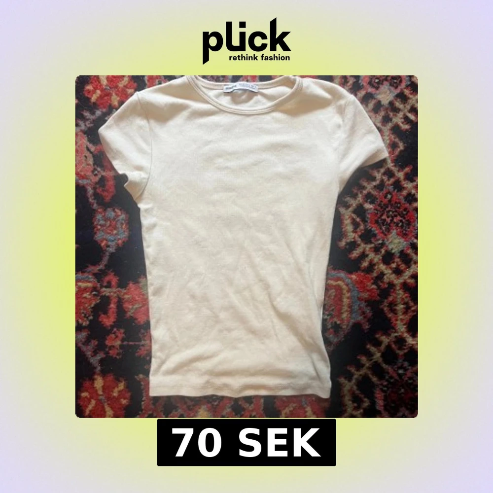 Enkel och stilren beige t-shirt från Bershka med rund halsringning och korta ärmar. Gjord i mjuk bomull, perfekt för en clean och avslappnad look.
