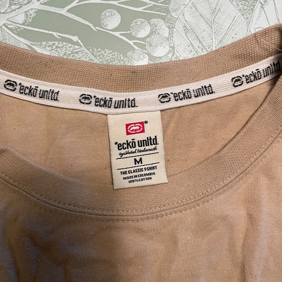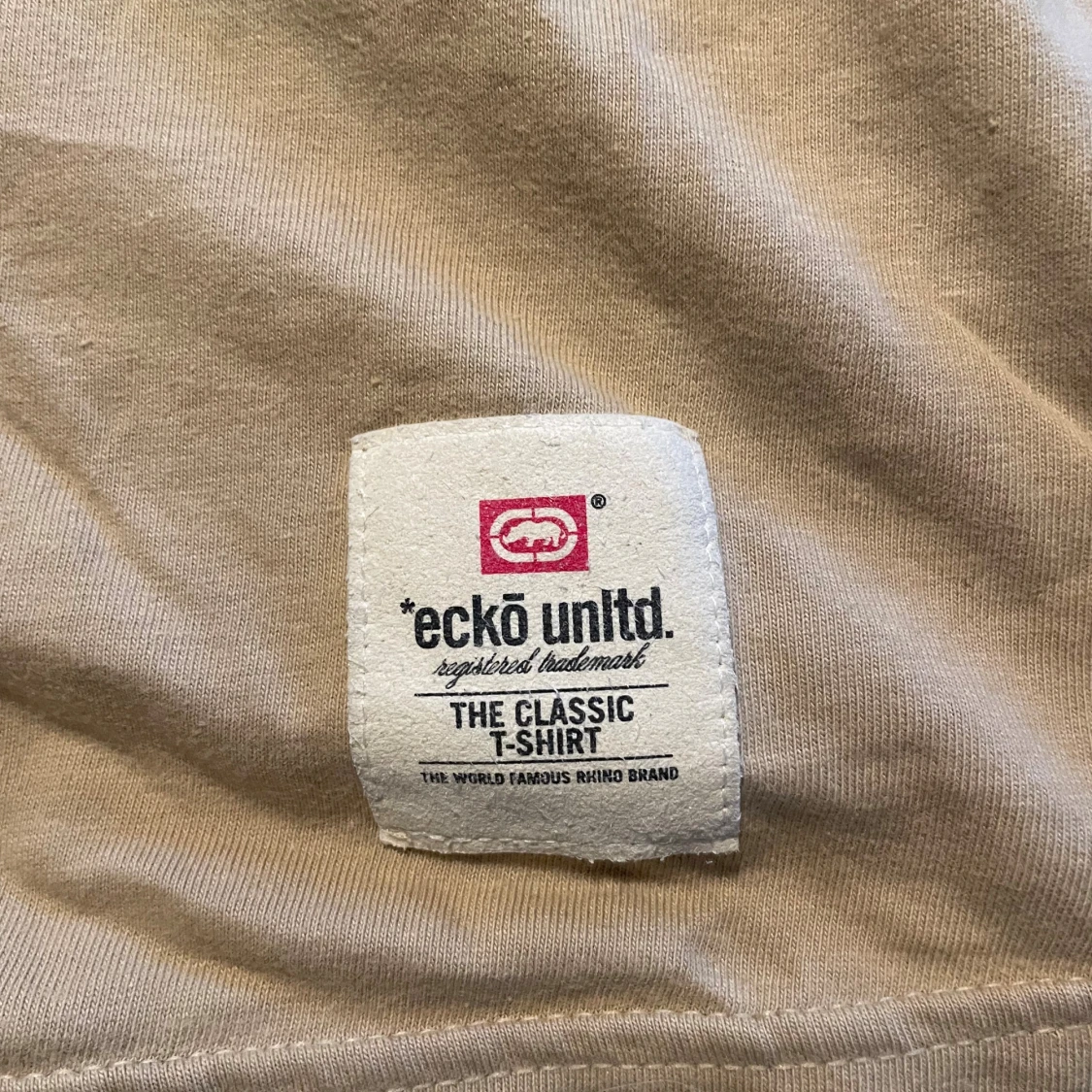 Snygg beige t-shirt från Ecko Unltd. med stort svart tryck på bröstet som har detaljerade mönster och döskallar. Rund hals och klassisk passform. Tillverkad i 100% bomull för skön känsla. Perfekt för dig som gillar streetwear och coola prints.