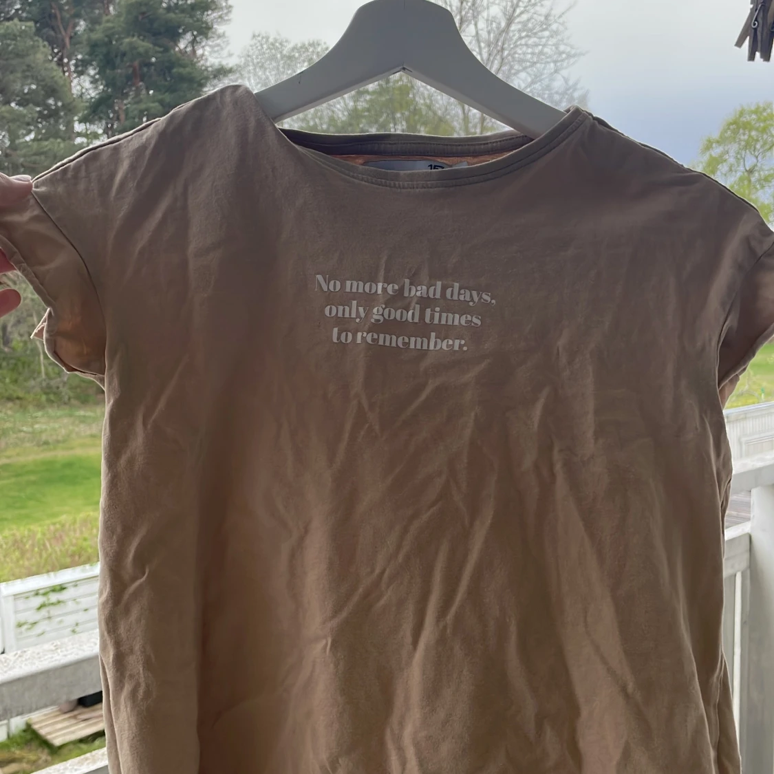 Beige t-shirt från 157 med vitt tryck på bröstet där det står 'No more bad days, only good times to remember'. Klassisk rund hals och korta ärmar. Perfekt för en avslappnad stil.