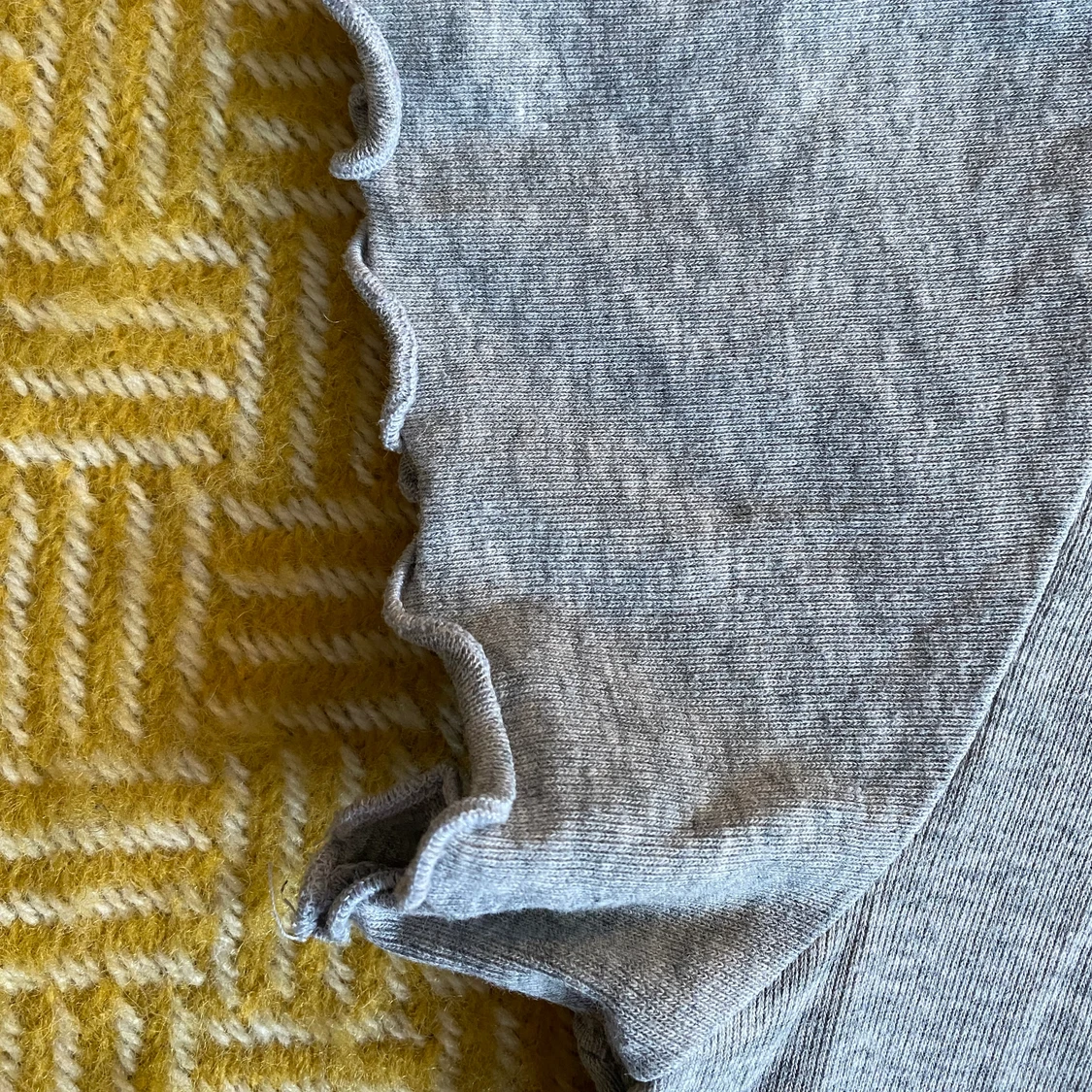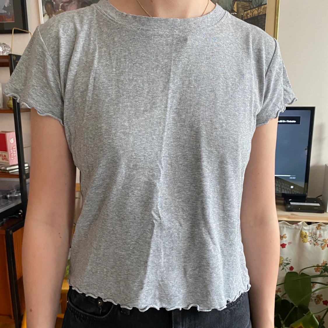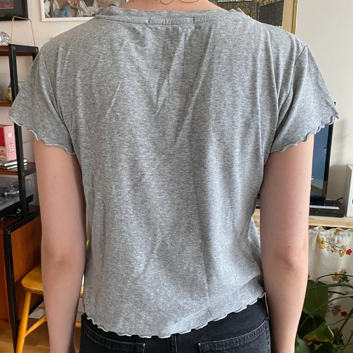 Grå t-shirt med volang i bomull från Bikbok. Storlek M.