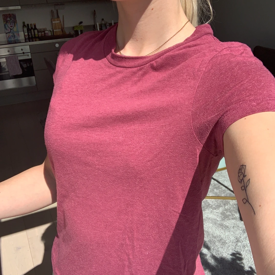 Enkel vinröd T-shirt. Skönt material. Storlek XS.