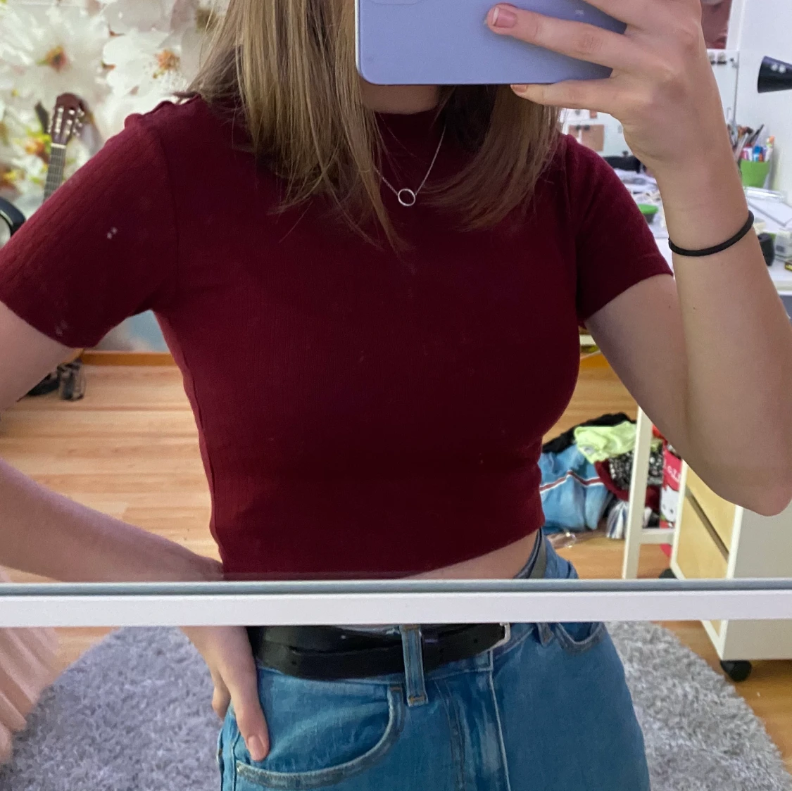 Stretchigt material och väldigt skön🥰 Den är från bikbok och jag har knappt använt den för det inte är min stil.😣Men fortfarande super fin och härlig färg🍷 Frakt: 42kr