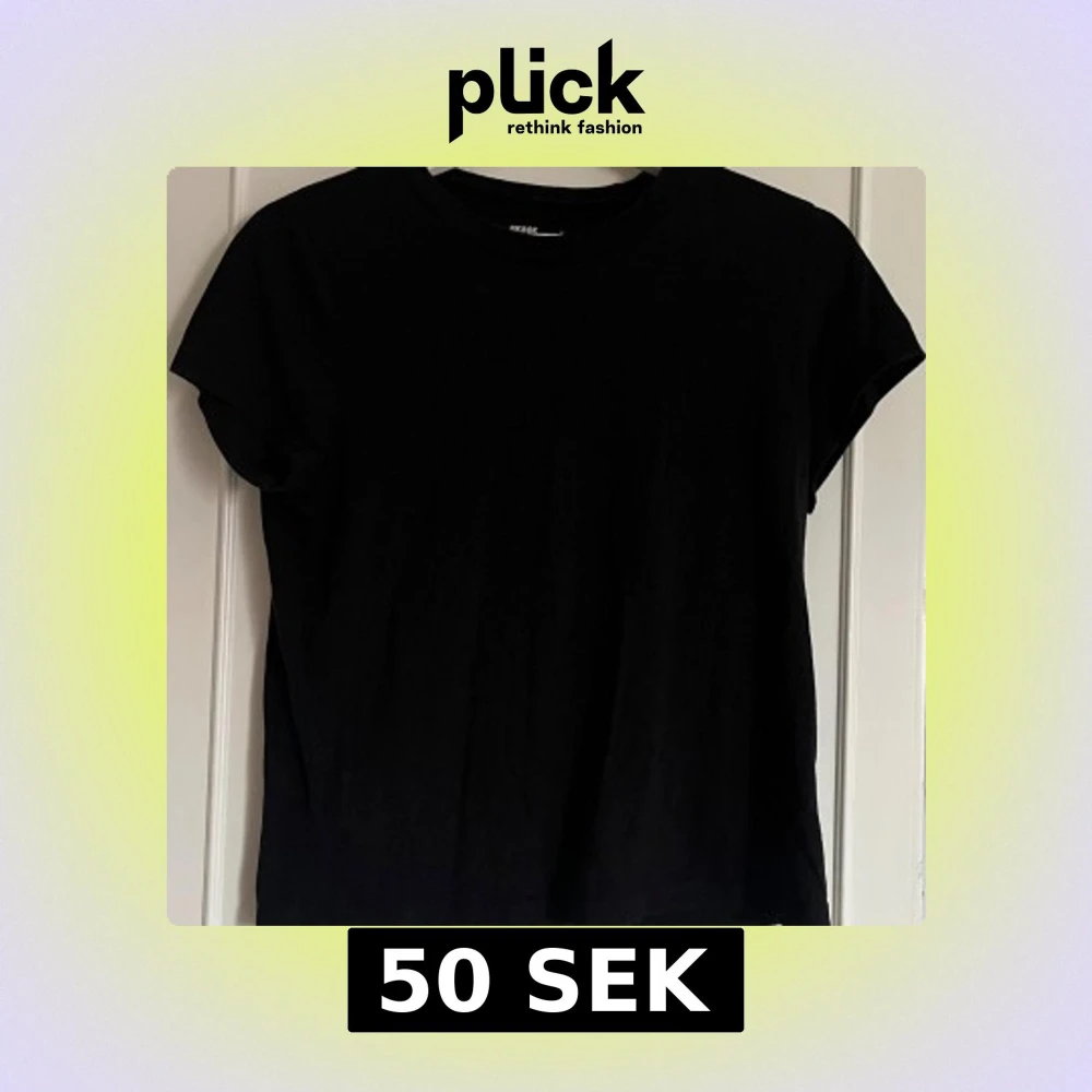 En klassisk svart t-shirt från Bik Bok med rund hals och korta ärmar. Enkel och stilren modell i mjuk bomull, perfekt till jeans eller shorts. Passformen är normal.