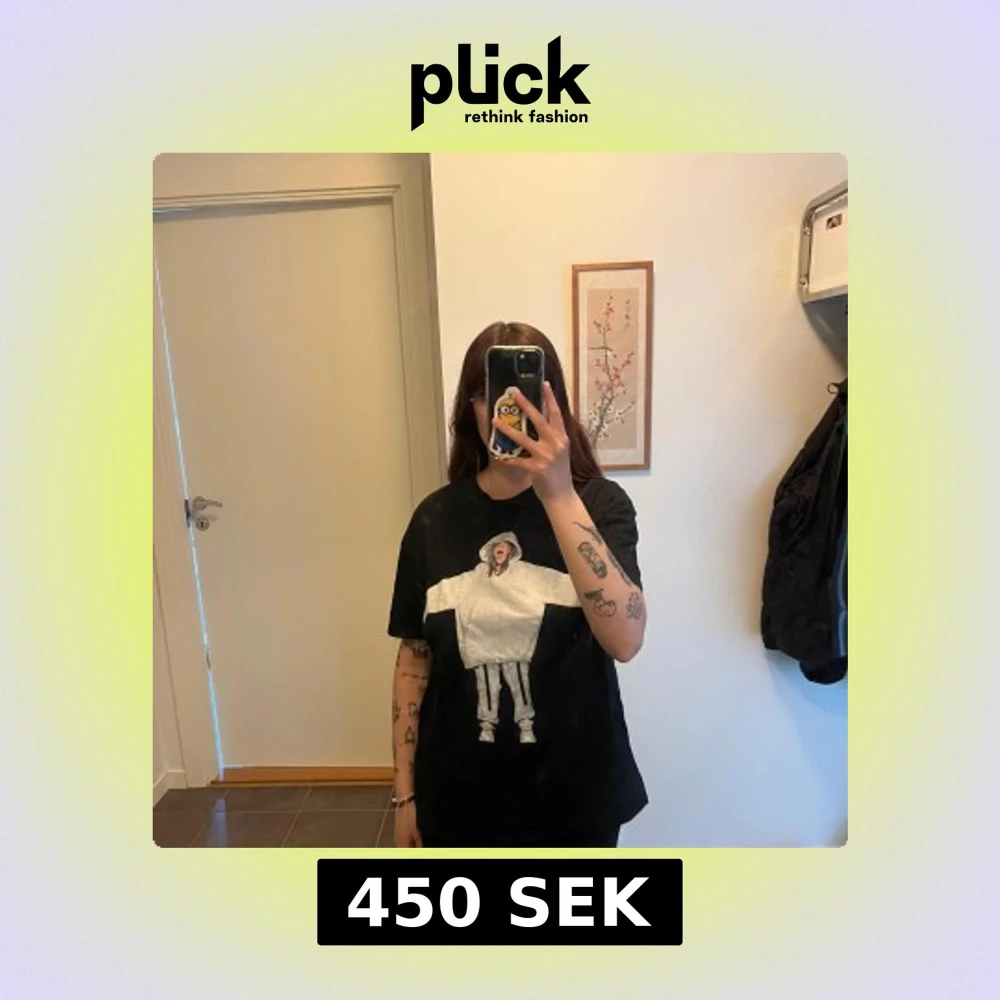Billie Eilish x Bershka t-shirt i storlek S. Den är i väldigt fint skick då den knappt är använd. Som referens är jag är 158cm och den sitter som ni ser på bilden. Pris kan diskuteras.