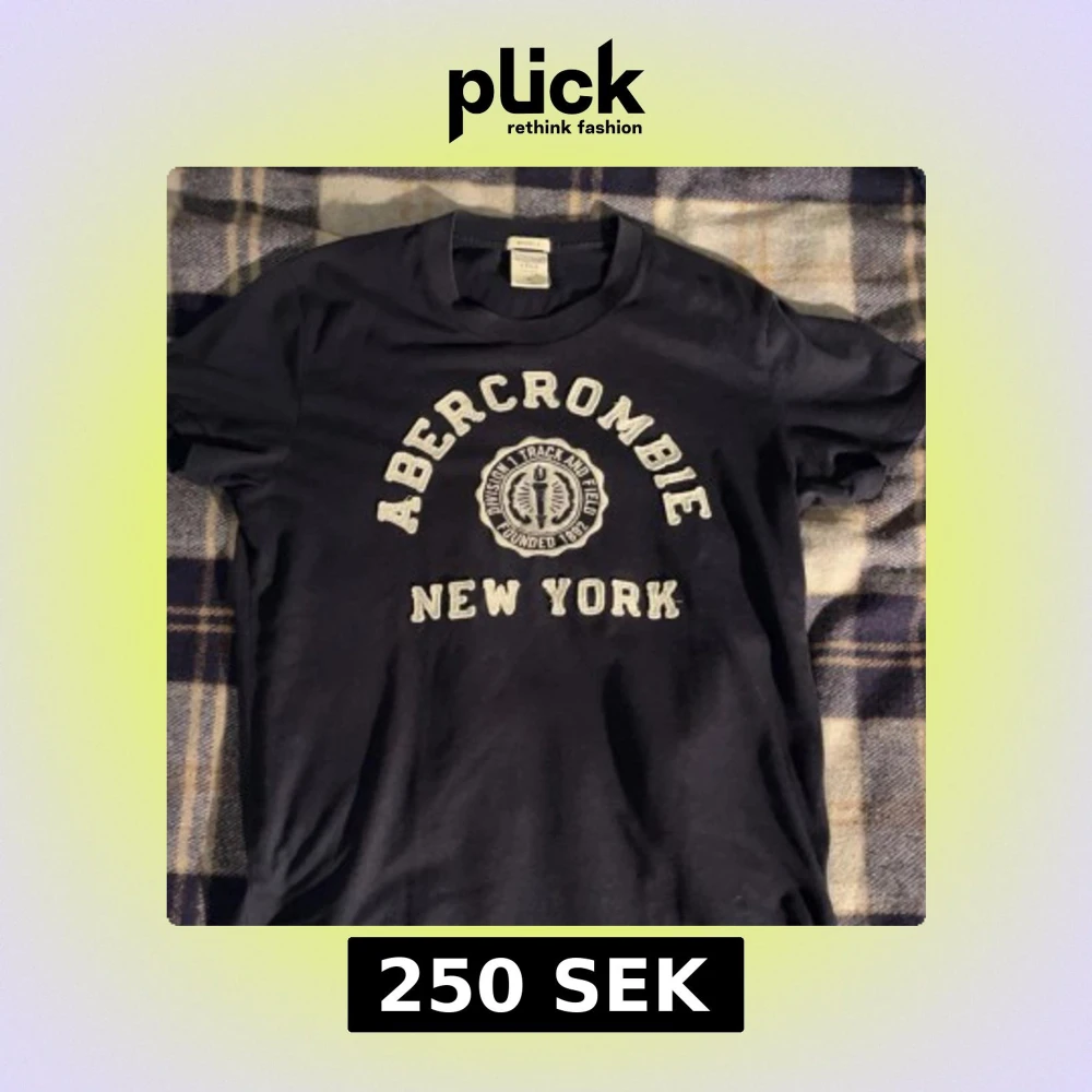 Snygg blå t-shirt från Abercrombie & Fitch med vit broderad text 'Abercrombie New York' och loggan på bröstet. Perfekt för dig som gillar 2000: eran.