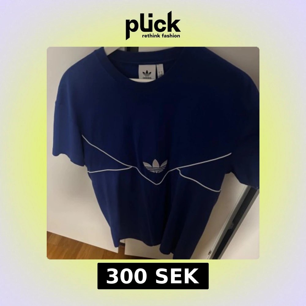 Snygg blå t-shirt från Adidas med vita linjer som går över bröstet och ryggen. Klassisk Adidas-logo framtill. Rund hals och korta ärmar. Skön bomullskvalitet som känns mjuk mot huden. Perfekt för dig som gillar sportig och clean stil.