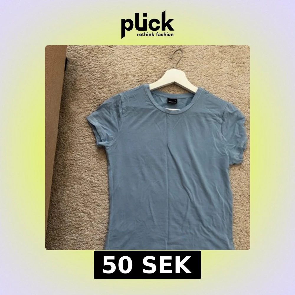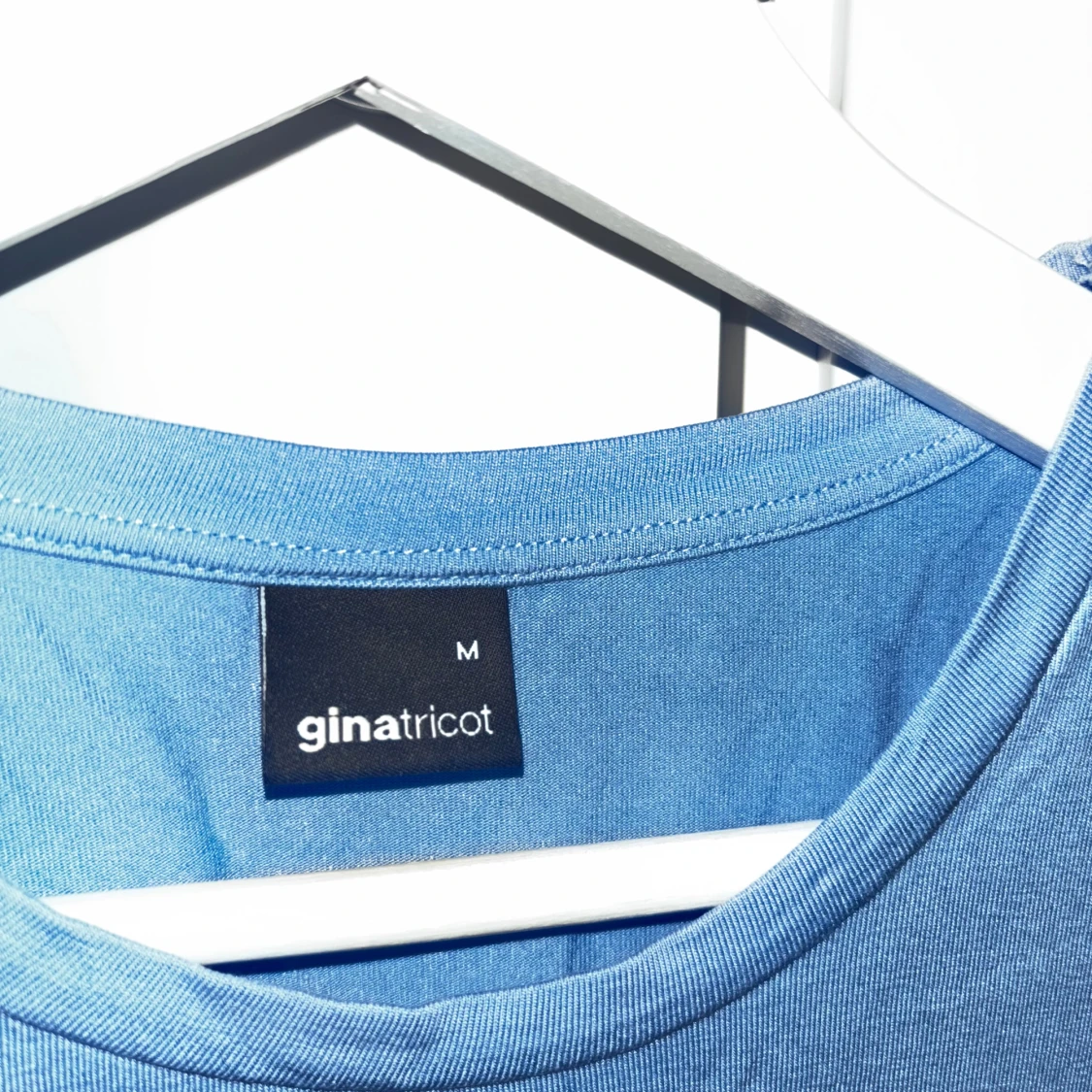 En stilren blå t-shirt från Gina Tricot i mjuk bomull. Modellen är klassisk med rund halsringning och korta ärmar. Perfekt att matcha med jeans eller kjol för en enkel och snygg look. Ej använd