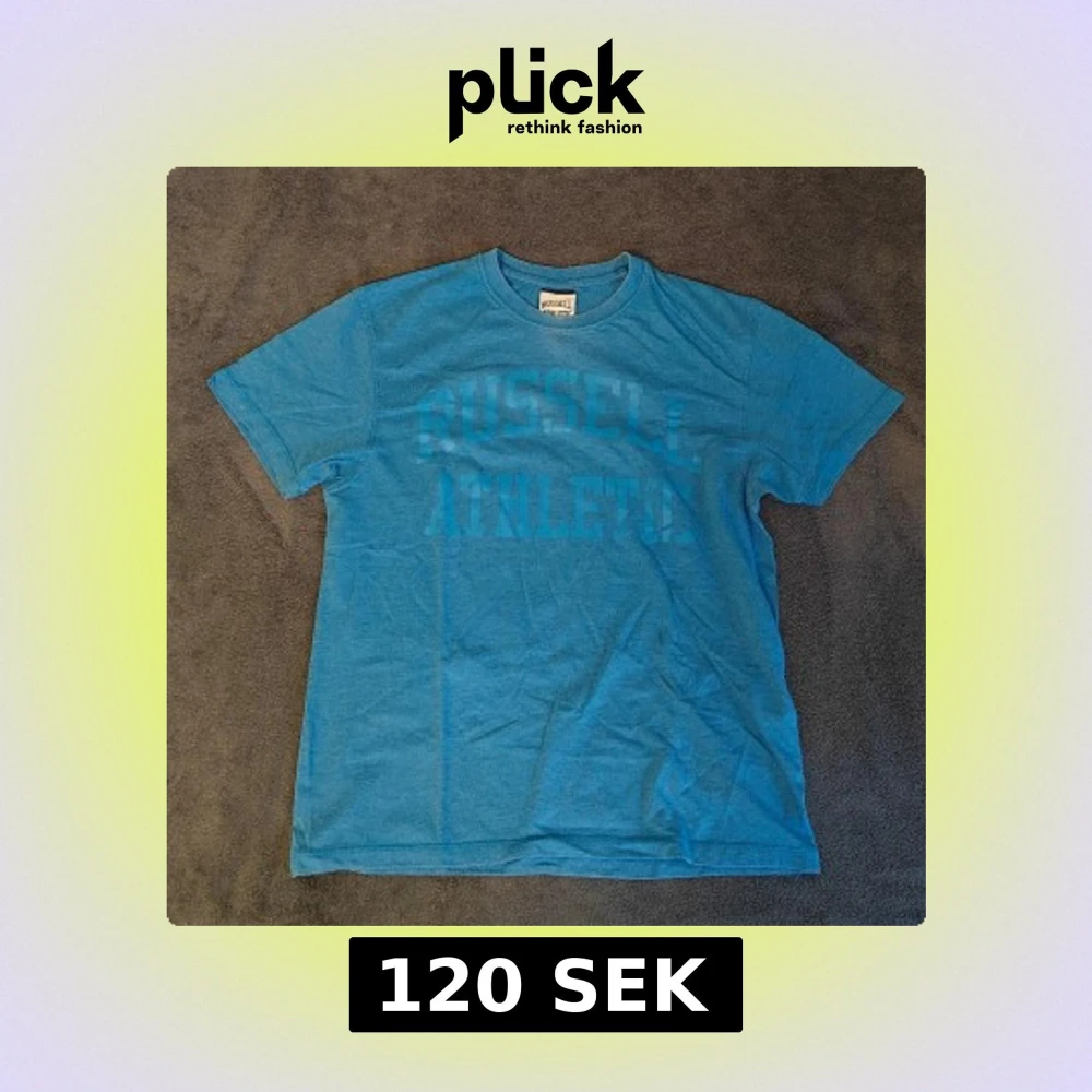 Blå t-shirt från Russell Athletic med stort tryck på framsidan. T-shirten är kortärmad och har en rund halsringning. Perfekt för träning eller att ha hemma. Skriv vid frågor eller funderingar!