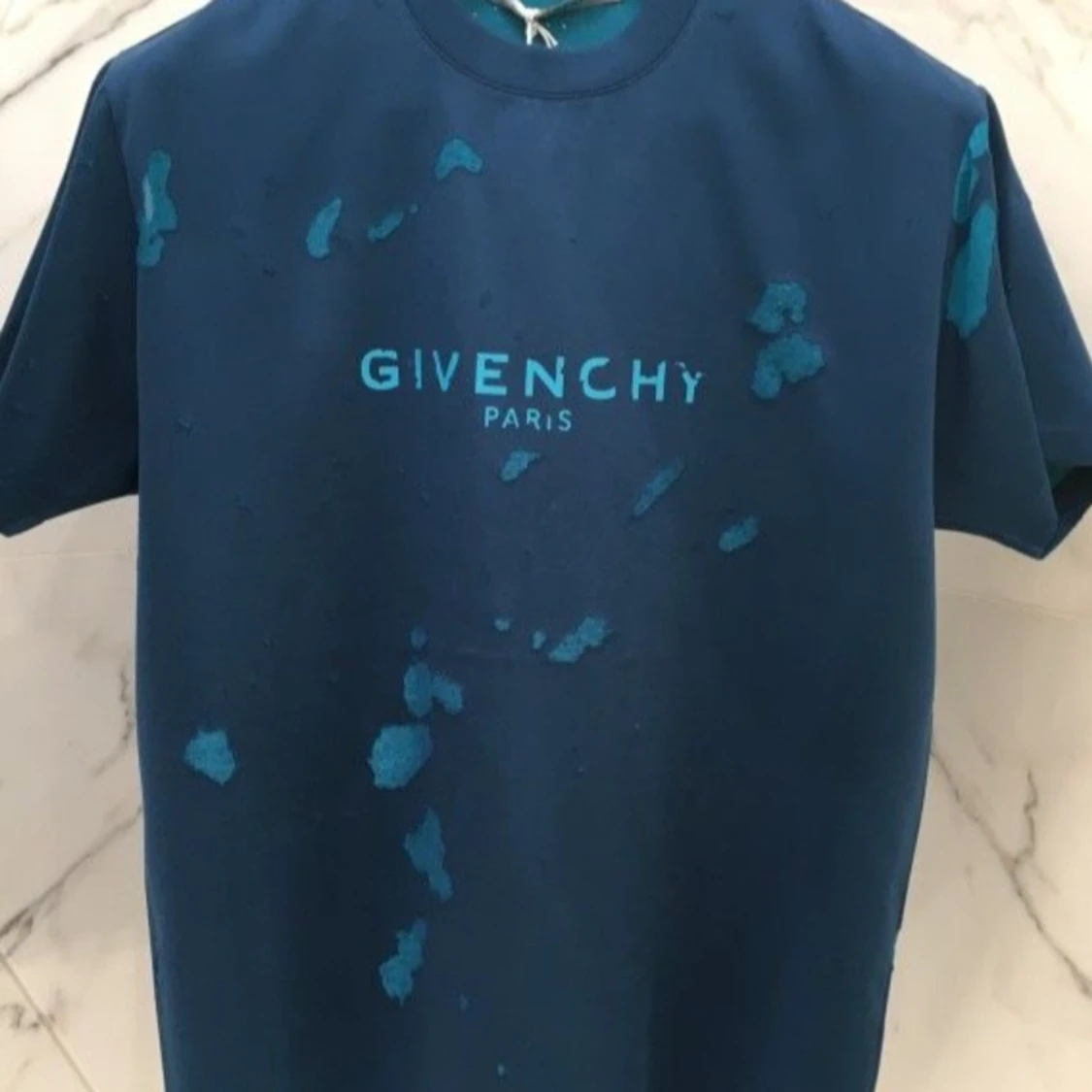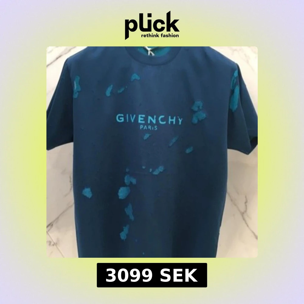 Givenchy tryck och splash-effekt i turkos. T-shirten har korta ärmar och klassisk rund hals. Givenchy Paris-loggan är tryckt framtill. Perfekt för dig som vill sticka ut med designerplagg. Kostar 12500kr på Farfetch pre-owned. Denna är helt oanvänd. Givetvis autentisk, äkta! Priset kan diskuteras enbart seriösa köpare.