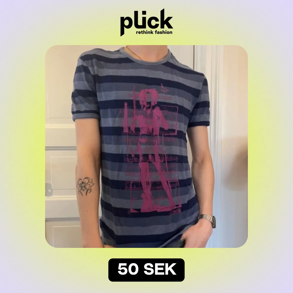 Vintage blå randig t-sjukt / graphic tee med rosa tryck 💗🏙️🌊