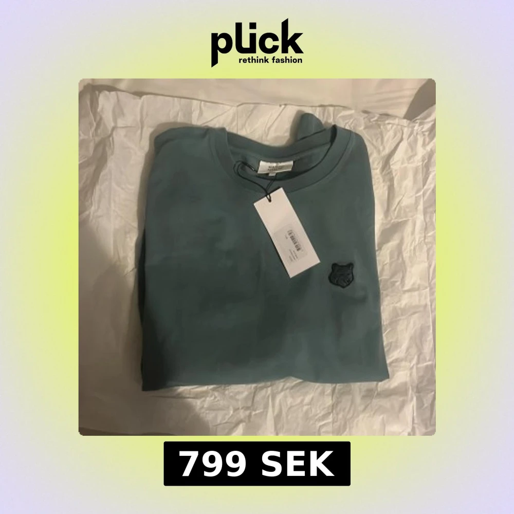Helt ny Snygg blå grön t-shirt från Maison Kitsuné i storlek L. T-shirten har ett broderat svart rävhuvud på bröstet och klassisk rund hals. Tillverkad i mjuk bomull som känns skön mot huden. Perfekt för dig som gillar stilrena detaljer och fransk streetwear. Passar nån som är ungefär 190+ närmare 2meter om man vill ha en smalare passform men närmare 190 om man vill ha en lite mer baggy passform köptes ifrån miinto för runt tusen lappen och jag säljer för 799 skriv om ni undrar något mvh Arvid
