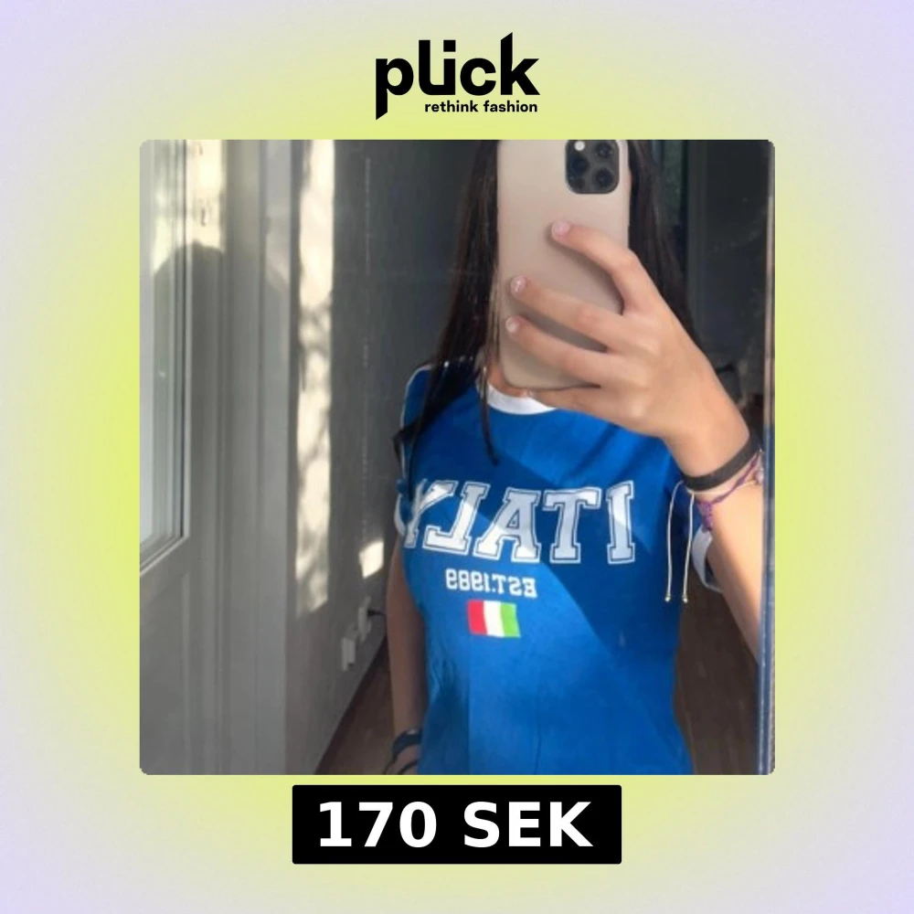 Snygg blå t-shirt. Modellen är tight och har vita detaljer vid hals och ärmslut. Köpt på Gina Tricot för 260 kr i storlek S och är aldrig använd. Prislappen är kvar.