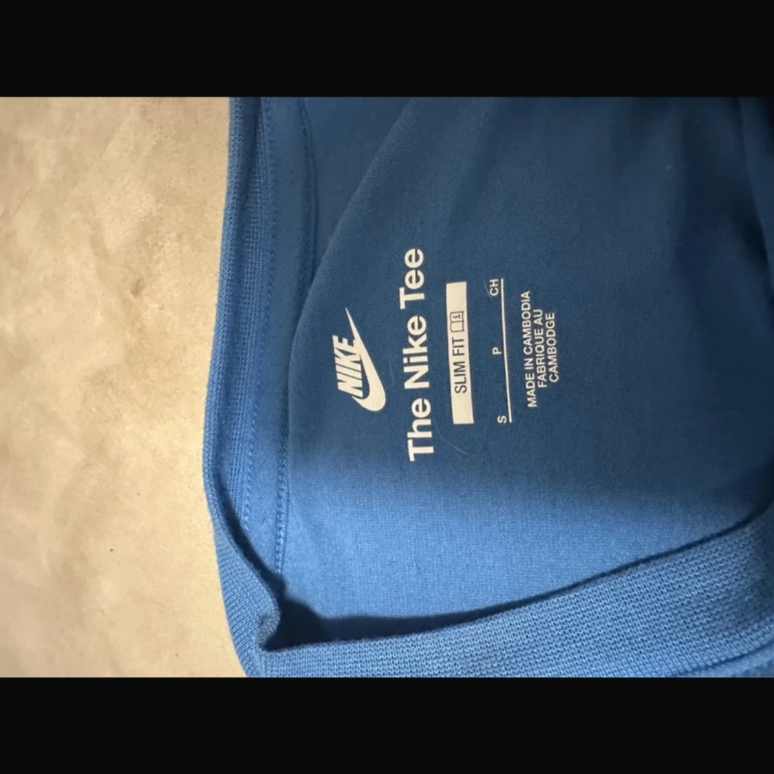 Blå t-shirt från Nike med klassisk vit swoosh-logga på bröstet. Modellen är slim fit och har korta ärmar. Tillverkad i mjuk bomull som känns skön mot huden. Perfekt för dig som gillar sportig och clean stil.